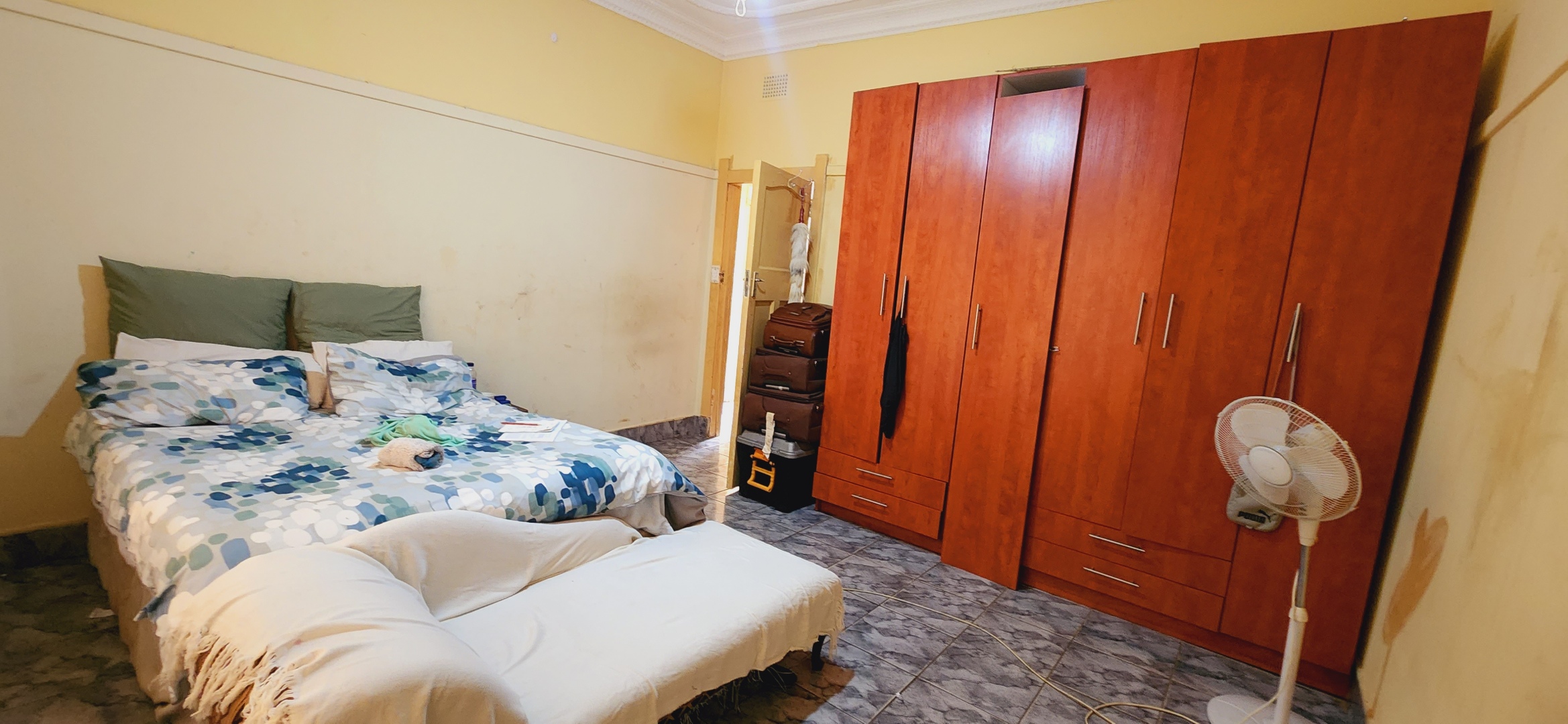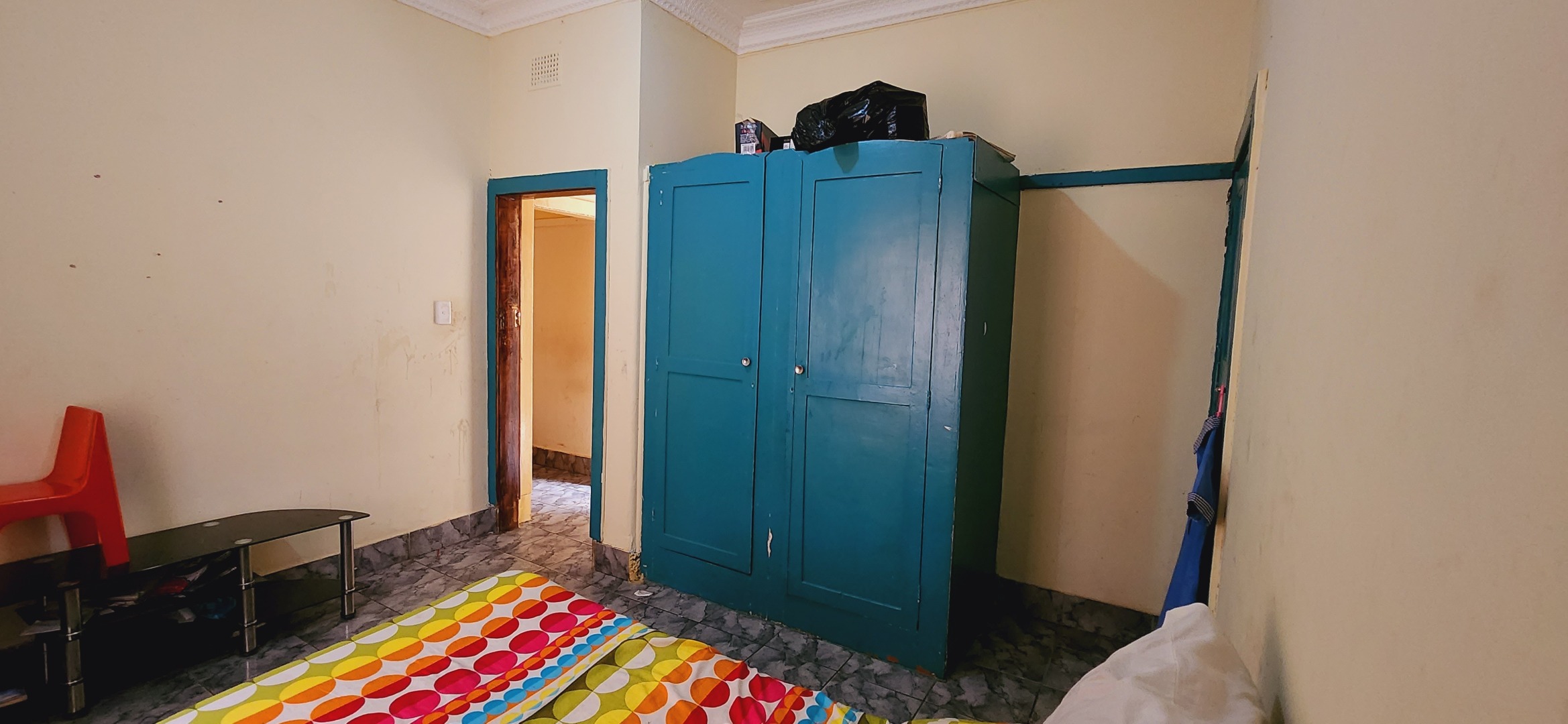 cupboards and a shared bathroom. The second bedroom connects to an extended