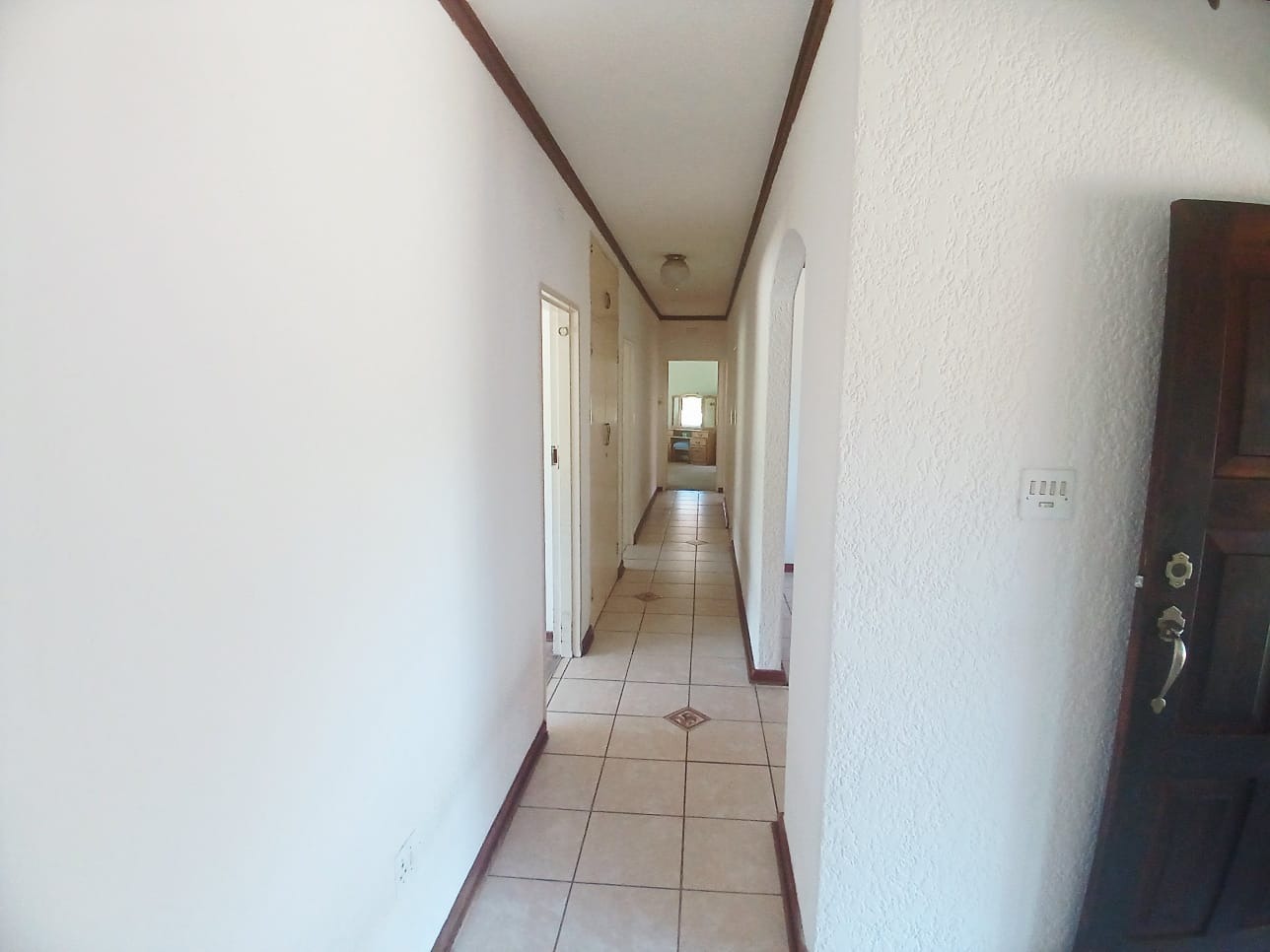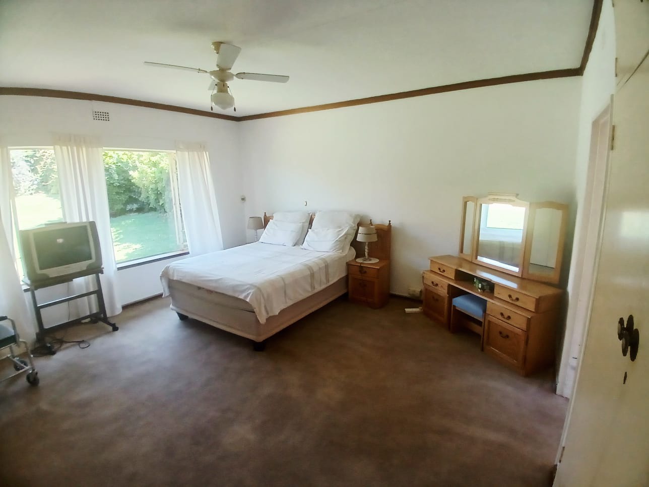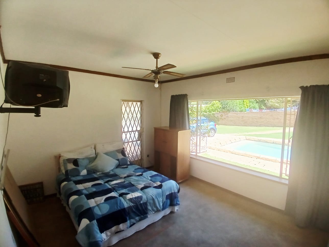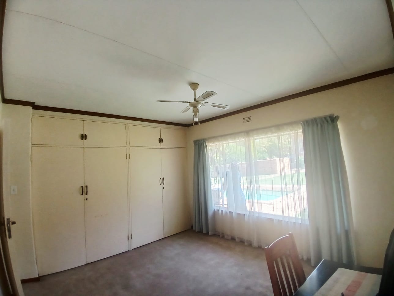 The interior, while functional, offers significant scope for contemporary upgrades. The three well-proportioned bedrooms provide ample space for rest and relaxation, with some featuring built-in wardrobes for convenient storage. Large windows throughout ensure abundant natural light, with views of the garden and swimming pool from certain rooms. The two bathrooms, though currently reflecting a dated aesthetic, are fully equipped and ready for a stylish renovation to create modern sanctuaries. Security bars on some windows provide an added layer of peace of mind.