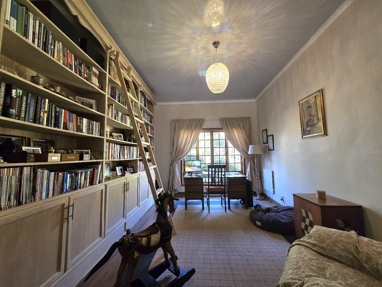 At the heart of the home is a warm, country-style kitchen fitted with a gas stove and supported by a separate scullery, allowing for easy meal preparation and extra storage. The home also includes a dedicated library, perfect for readers or anyone who enjoys a quiet escape, and a home office/study that suits remote work or administrative needs.