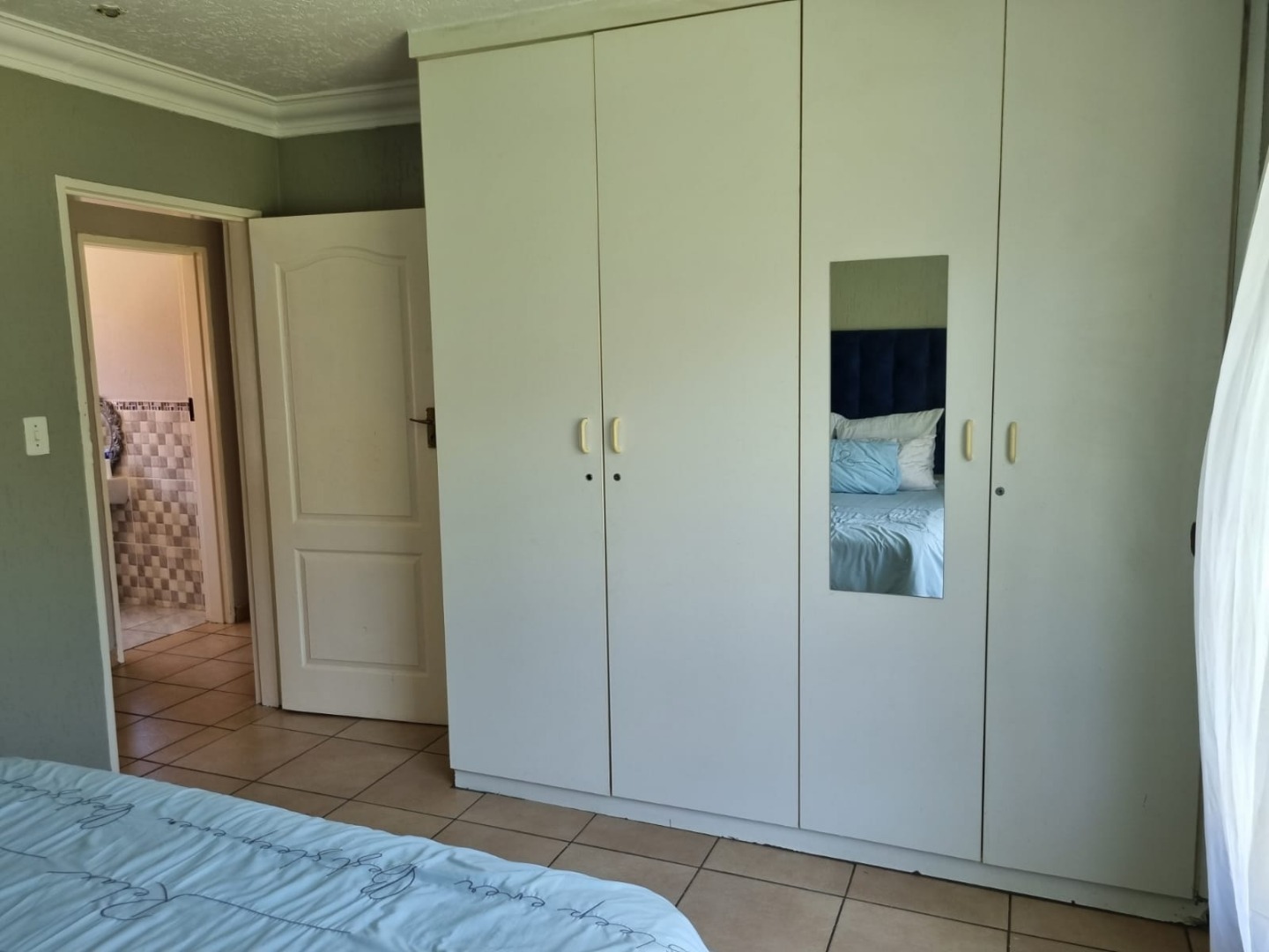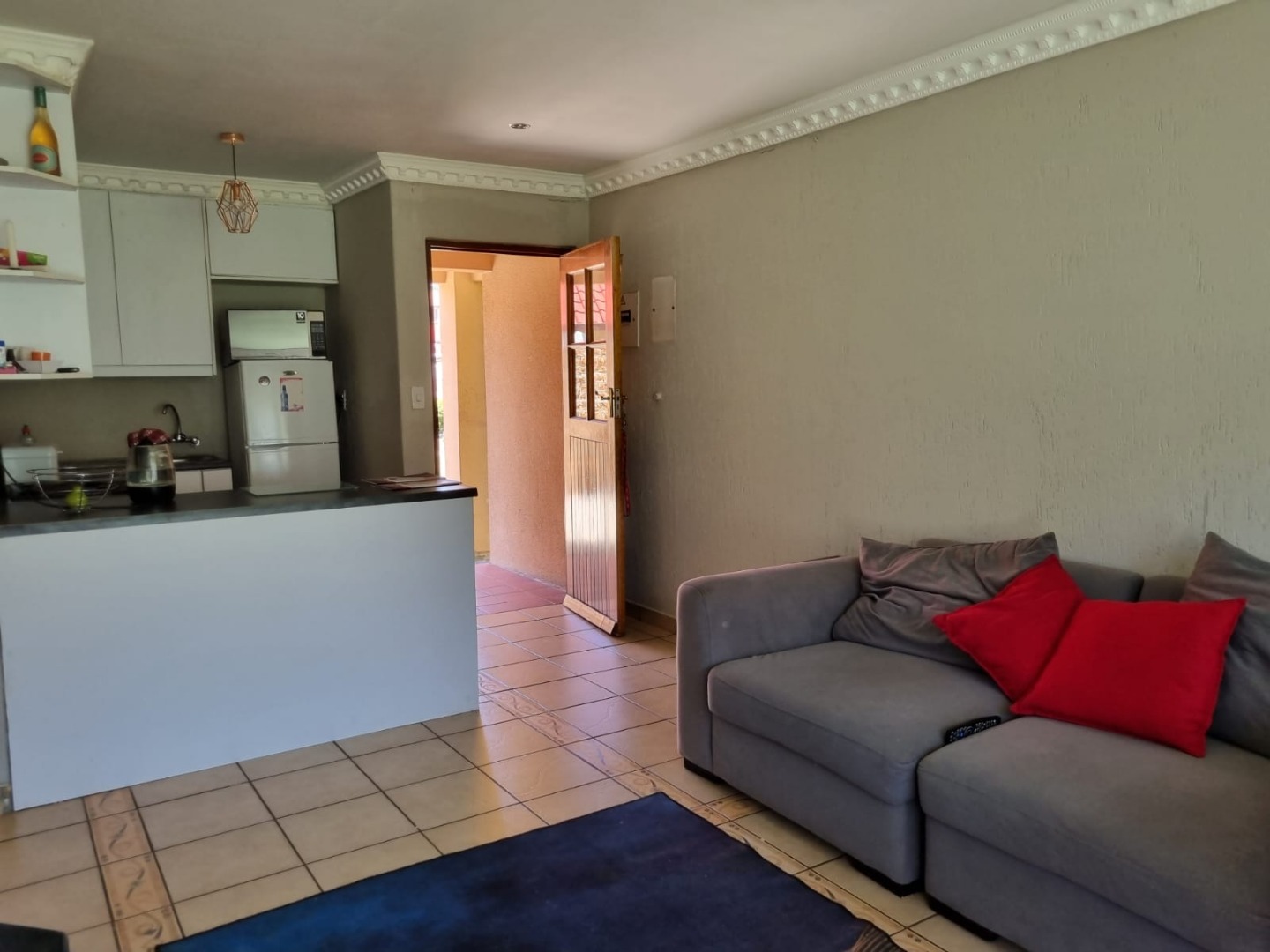 Discover comfortable and secure suburban living in this inviting 2-bedroom, 1-bathroom rental property located in a well-maintained complex in Meredale, Johannesburg. Spanning an efficient 49 square meters, this residence is designed for practical living, offering a blend of functionality and convenience ideal for individuals or small families seeking a tranquil environment. The interior features an open-plan layout that seamlessly connects the lounge and kitchen areas, creating a cohesive living space. Tiled flooring extends throughout the property, ensuring easy maintenance and a clean aesthetic. The lounge benefits from abundant natural light, enhanced by decorative crown molding that adds a touch of classic charm. The kitchen, while compact, is fully functional, equipped with white overhead cabinets, dark countertops, a built-in stove and oven, and a practical breakfast bar. It provides ample storage and space for essential appliances, including a refrigerator and microwave, catering to everyday culinary needs. Both bedrooms are designed for comfort, featuring tiled floors and textured walls. One bedroom boasts a striking blue tufted headboard and a large window, allowing for plenty of natural light. The second bedroom offers the added convenience of a built-in wardrobe with a central mirror, providing generous storage, and direct access to the bathroom. The single bathroom is functional, complete with a bathtub and tiled walls, ensuring a practical space for daily routines. Externally, the property presents a neat appearance with a well-maintained, vibrant green lawn and a modern red tiled roof. Residents can enjoy a private patio area and access to a garden, perfect for relaxation. The complex offers practical amenities including paving, a driveway, and a communal braai area, fostering a sense of community. With two dedicated parking spaces, convenience is prioritized for residents. Security is a key feature of this Meredale rental, with 24-hour security and a security post ensuring peace of mind. The property is totally walled, adding an extra layer of privacy and safety within the suburban complex setting. This home offers a secure and accessible lifestyle in a desirable Johannesburg location. Key Features: * 2 Bedrooms, 1 Bathroom * Open-plan lounge and kitchen * Tiled flooring throughout * Functional kitchen with breakfast bar * Private patio and garden access * Two dedicated parking spaces * 24-hour security in complex * Communal braai area * Convenient Meredale location