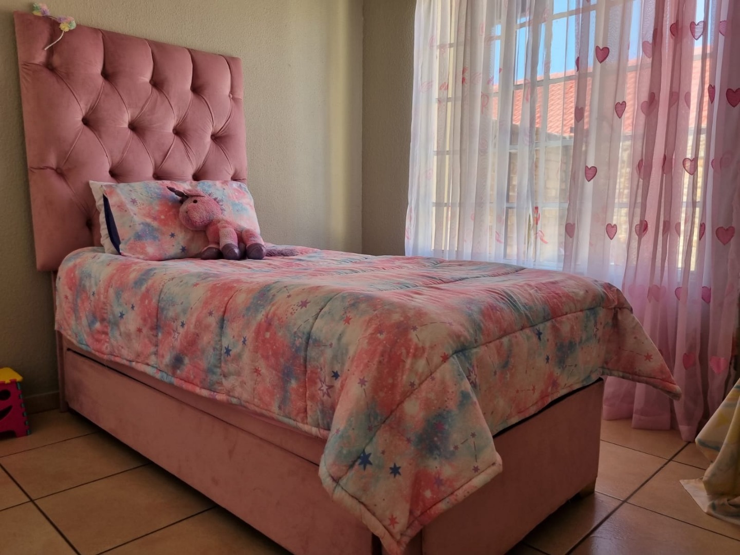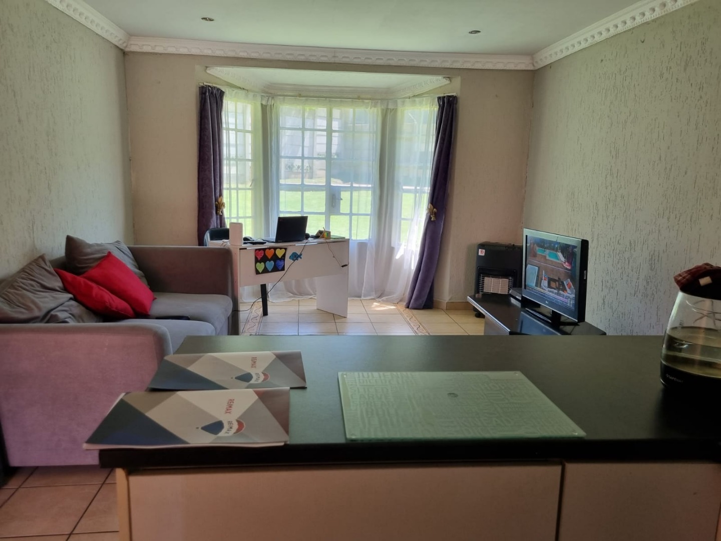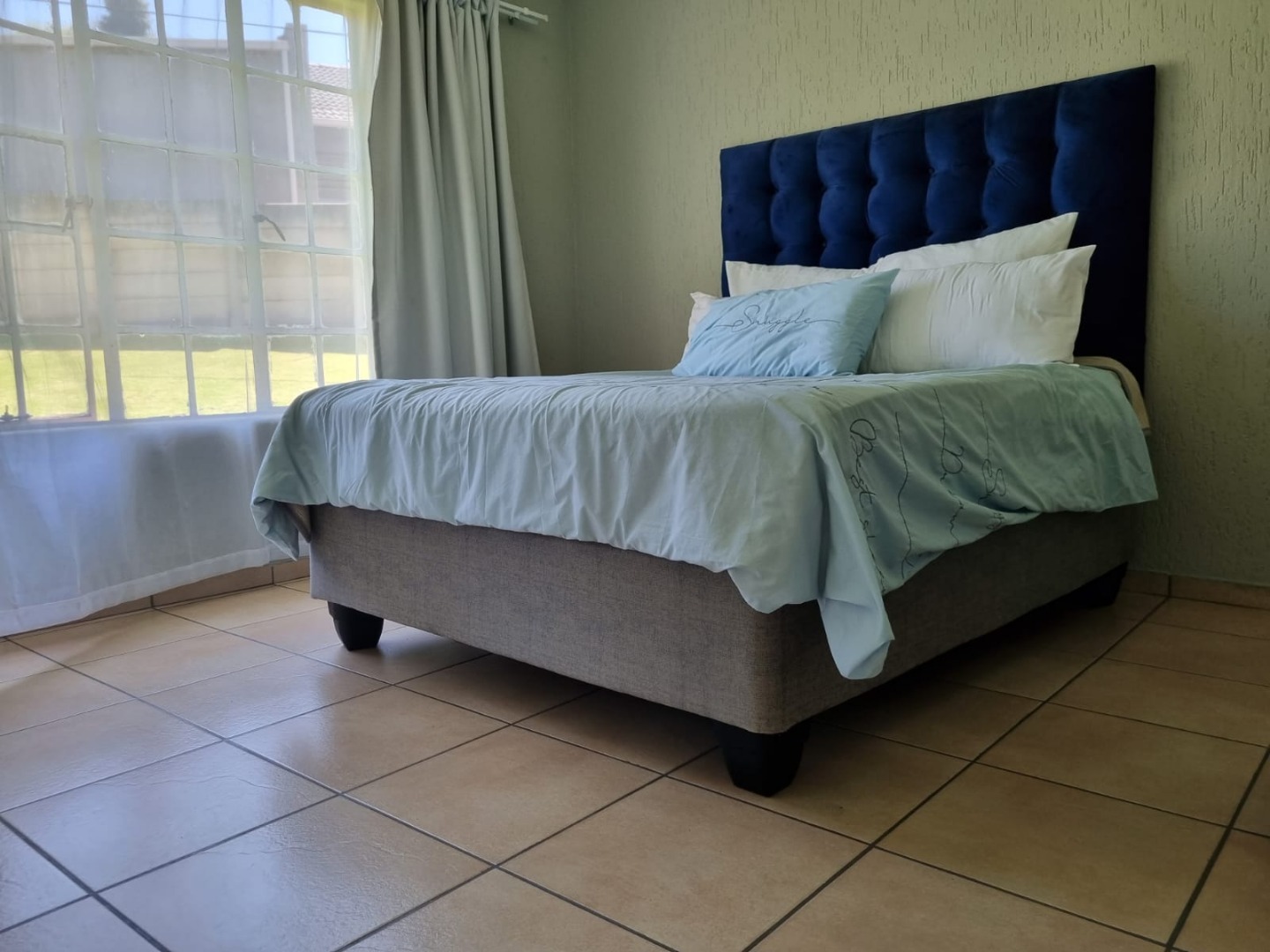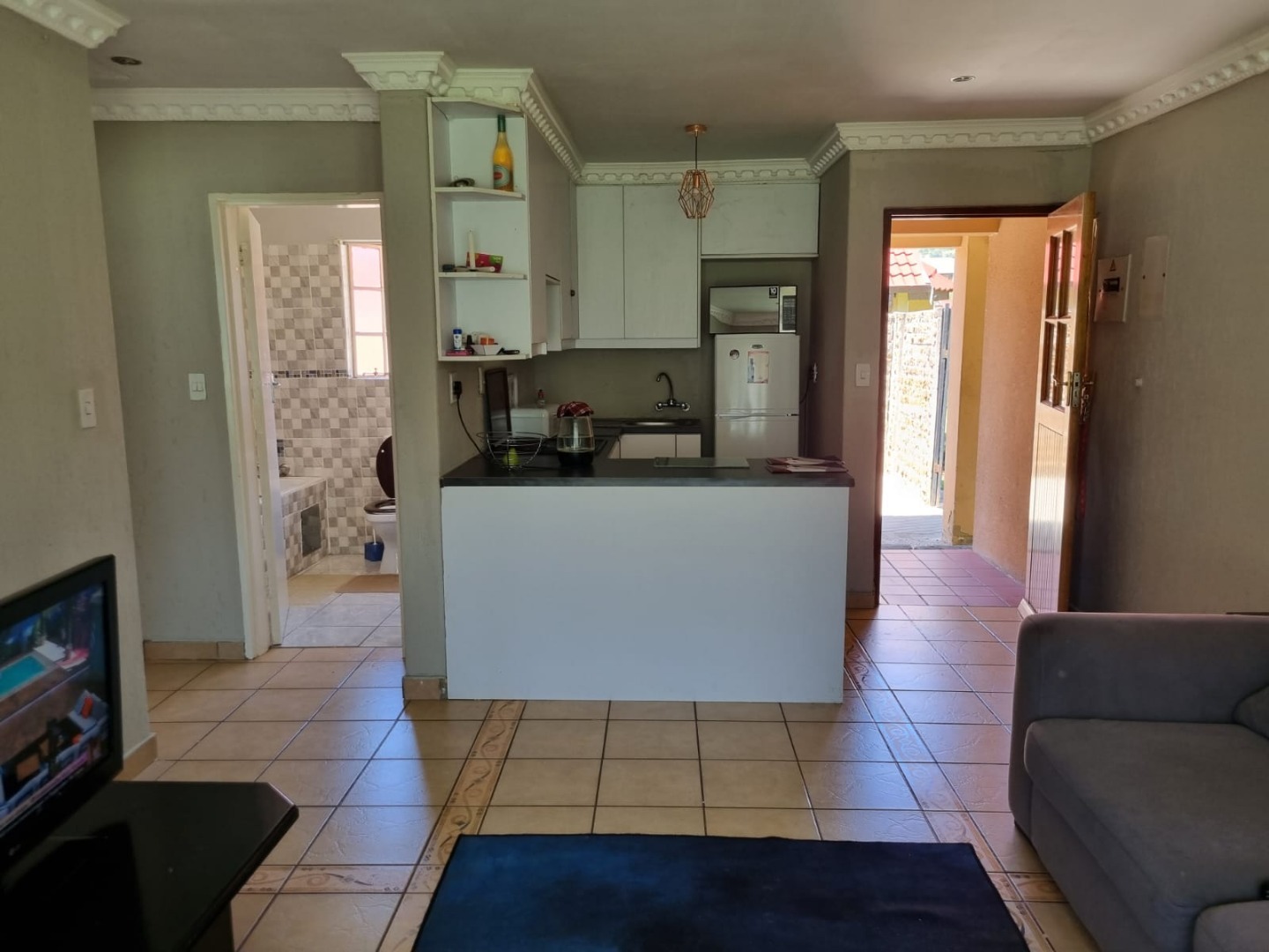 Discover comfortable and secure suburban living in this inviting 2-bedroom, 1-bathroom rental property located in a well-maintained complex in Meredale, Johannesburg. Spanning an efficient 49 square meters, this residence is designed for practical living, offering a blend of functionality and convenience ideal for individuals or small families seeking a tranquil environment. The interior features an open-plan layout that seamlessly connects the lounge and kitchen areas, creating a cohesive living space. Tiled flooring extends throughout the property, ensuring easy maintenance and a clean aesthetic. The lounge benefits from abundant natural light, enhanced by decorative crown molding that adds a touch of classic charm. The kitchen, while compact, is fully functional, equipped with white overhead cabinets, dark countertops, a built-in stove and oven, and a practical breakfast bar. It provides ample storage and space for essential appliances, including a refrigerator and microwave, catering to everyday culinary needs. Both bedrooms are designed for comfort, featuring tiled floors and textured walls. One bedroom boasts a striking blue tufted headboard and a large window, allowing for plenty of natural light. The second bedroom offers the added convenience of a built-in wardrobe with a central mirror, providing generous storage, and direct access to the bathroom. The single bathroom is functional, complete with a bathtub and tiled walls, ensuring a practical space for daily routines. Externally, the property presents a neat appearance with a well-maintained, vibrant green lawn and a modern red tiled roof. Residents can enjoy a private patio area and access to a garden, perfect for relaxation. The complex offers practical amenities including paving, a driveway, and a communal braai area, fostering a sense of community. With two dedicated parking spaces, convenience is prioritized for residents. Security is a key feature of this Meredale rental, with 24-hour security and a security post ensuring peace of mind. The property is totally walled, adding an extra layer of privacy and safety within the suburban complex setting. This home offers a secure and accessible lifestyle in a desirable Johannesburg location. Key Features: * 2 Bedrooms, 1 Bathroom * Open-plan lounge and kitchen * Tiled flooring throughout * Functional kitchen with breakfast bar * Private patio and garden access * Two dedicated parking spaces * 24-hour security in complex * Communal braai area * Convenient Meredale location