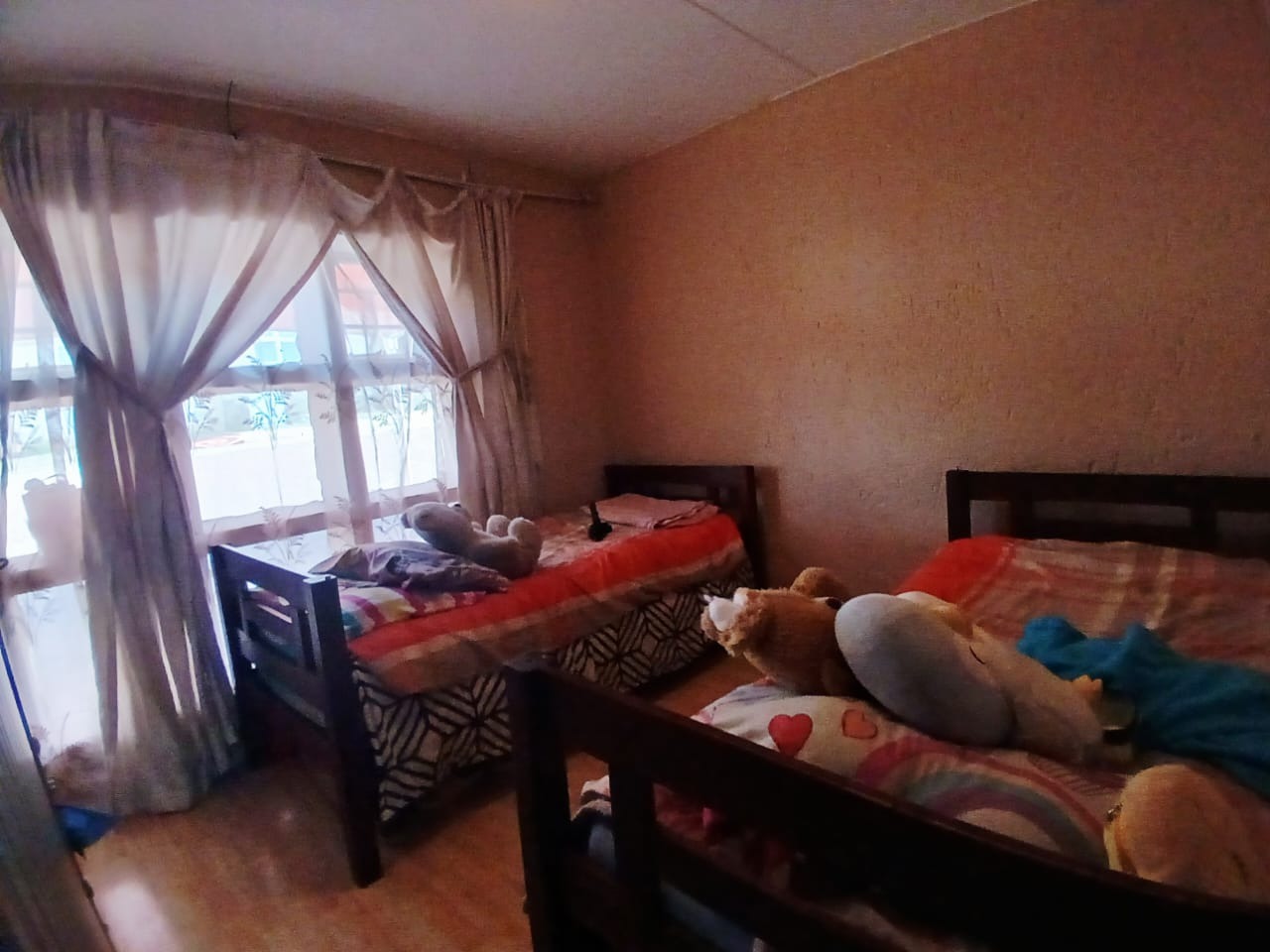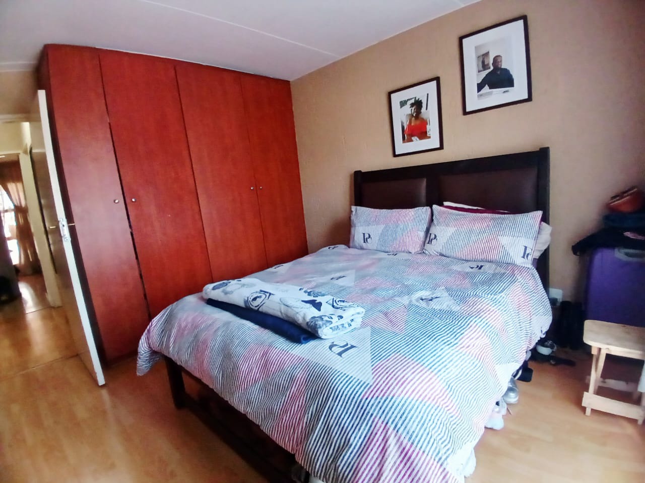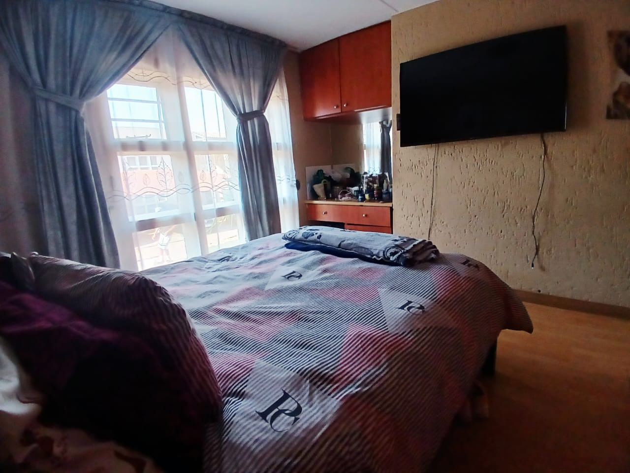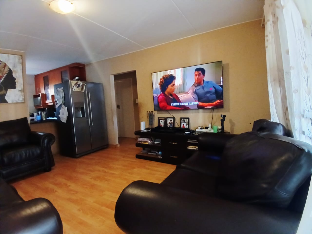 Discover comfortable suburban living in this inviting 2-bedroom, 1-bathroom unit located within a well-established complex in Mondeor, Johannesburg. Spanning a practical 62 square metres, this residence offers a functional layout designed for ease and convenience, ideal for individuals or small families seeking a secure and accessible home. Upon entering, you are greeted by an open-plan living area that seamlessly integrates with the kitchen, creating a cohesive and spacious feel. The living room features durable wood-look laminate flooring, which extends throughout the main areas, providing a clean and contemporary aesthetic that is also easy to maintain. Ample natural light streams in through large windows, illuminating the space and highlighting the comfortable dark leather-style seating and personalized artwork that adorn the textured walls, adding character and warmth to the home. A large wall-mounted TV serves as a focal point for entertainment. The kitchen, a central hub of the home, is equipped with dark wood cabinetry offering generous storage, complemented by dark countertops. It includes a built-in oven and hob, a double sink, and a modern stainless steel refrigerator, catering to all your culinary needs. The tiled flooring and backsplash ensure practicality and easy cleaning, while a window above the sink provides natural light and ventilation. This unit comprises two well-proportioned bedrooms, each featuring laminate wood flooring and built-in storage, ensuring a tidy and organized living environment. Natural light enhances the comfort of these private spaces. The single bathroom is conveniently located to serve both bedrooms, completing the functional interior layout of this home. Residents of this complex benefit from a range of communal amenities, including a swimming pool, perfect for relaxation and recreation during warmer months. The property offers one dedicated parking bay, with additional covered parking bays visible within the complex, enhancing convenience. The multi-story building design, with its neutral exterior and individual access points, contributes to a pleasant living environment. Security is a priority, with the complex featuring an access gate and being totally walled, providing peace of mind for residents. Mondeor is a well-regarded suburban area in Johannesburg, known for its family-friendly atmosphere and convenient access to local amenities, schools, and major transport routes. This location offers a balanced lifestyle, combining the tranquility of suburban living with the accessibility of urban conveniences. Key Features: * 2 Bedrooms, 1 Bathroom * 62 sqm Floor Size * Open-plan living and kitchen area * Wood-look laminate flooring * Functional kitchen with built-in oven/hob * Access to communal swimming pool * One dedicated parking bay * Secure complex with access gate and total walling * Suburban location in Mondeor, Johannesburg
