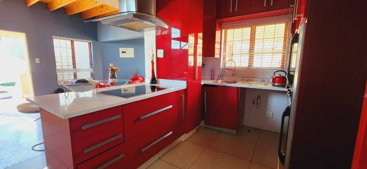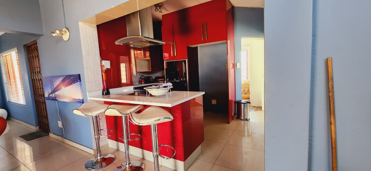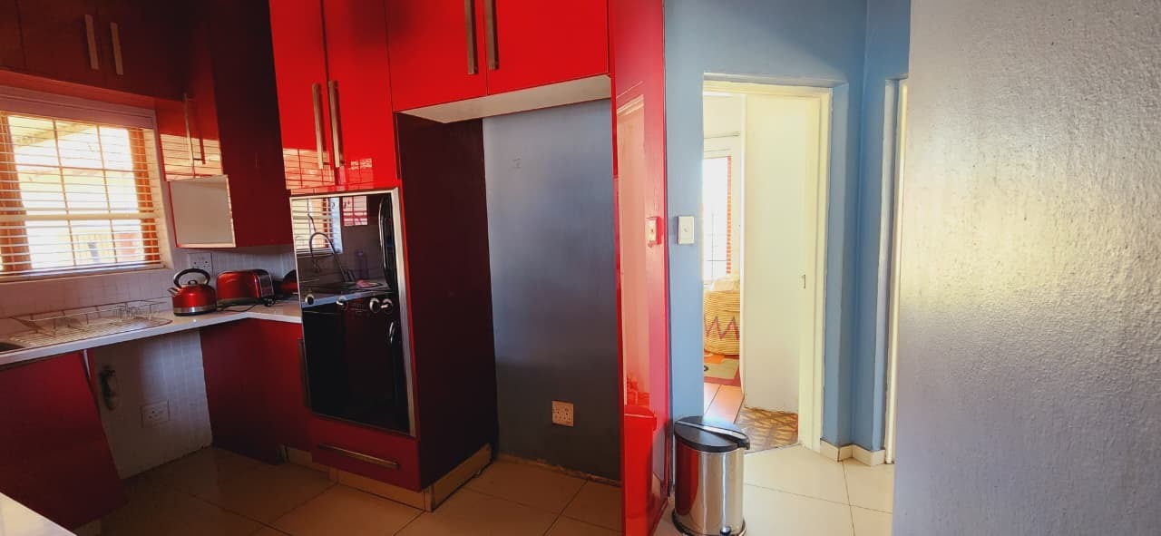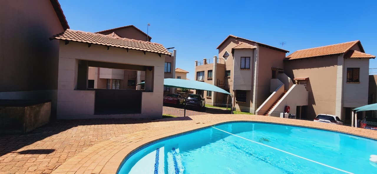 Nestled in the suburban heart of Ridgeway, Johannesburg, this modern residential unit offers a vibrant and convenient lifestyle within a well-maintained complex. The multi-story architecture, featuring terracotta roofs, presents an inviting kerb appeal, setting the tone for the contemporary living spaces within. This property is ideally situated for those seeking a dynamic urban experience combined with the comforts of a secure community. Step inside to discover an intelligently designed open-plan layout that maximises space and natural light. The heart of this home is its striking modern kitchen, boasting bold red high-gloss cabinetry, crisp white countertops, and a practical island with an integrated induction hob and extractor fan. This functional space also features a breakfast bar, perfect for casual dining or entertaining. Seamlessly flowing from the kitchen, the living area is characterised by high ceilings with exposed wooden beams, adding a touch of rustic charm to the contemporary aesthetic. Sleek tiled flooring extends throughout these communal areas, ensuring durability and ease of maintenance, while large windows invite abundant natural light. A contemporary metal staircase serves as a stylish focal point, leading to the upper level and enhancing the property's modern appeal. The inclusion of a built-in bar further elevates the entertainment potential of the living space, making it ideal for social gatherings and a dedicated family TV room. This residence comprises two comfortable bedrooms and two well-appointed bathrooms, providing ample accommodation for residents. The overall modern design language suggests a consistent standard of finish and comfort throughout the private quarters. Beyond the interior, residents benefit from access to a clean and inviting communal swimming pool, complete with a paved surround, offering a refreshing escape during warmer months. The property includes one dedicated parking bay, with covered parking available under shade nets, ensuring convenience and protection for your vehicle. A private garden area and a balcony provide additional outdoor spaces for relaxation and enjoyment. Security is a priority within this totally walled complex, featuring 24-hour security, an access gate, burglar bars, and security gates, offering peace of mind for all residents. Key Features: * Two Bedrooms, Two Bathrooms * Modern Open-Plan Living Area * Striking Red Kitchen with Island & Breakfast Bar * Communal Swimming Pool Access * Dedicated Parking Bay * Private Balcony and Garden * 24-Hour Security with Access Gate, Burglar Bars, and Security Gates * Built-in Bar Feature * High Ceilings with Exposed Wooden Beams and Tiled Flooring