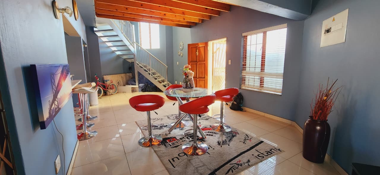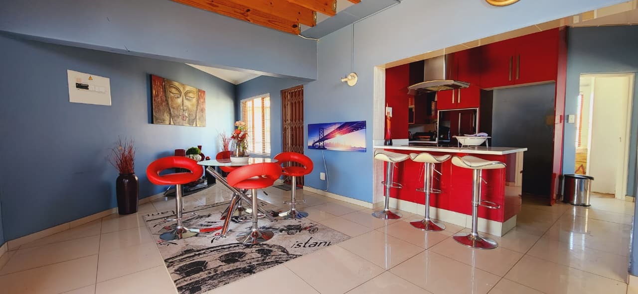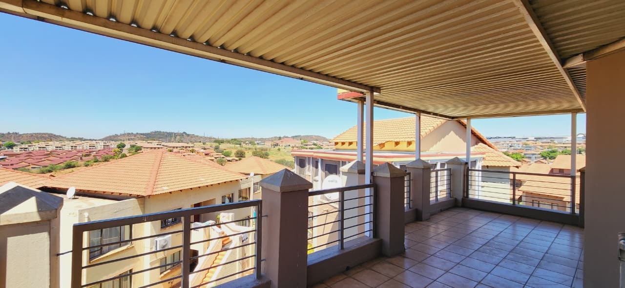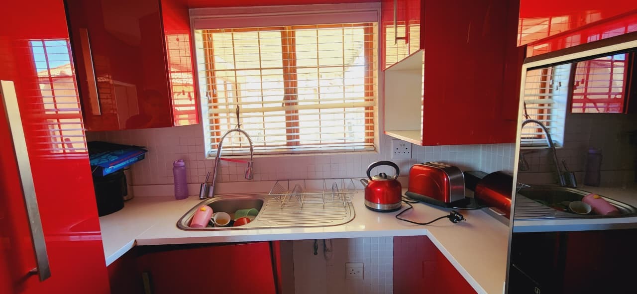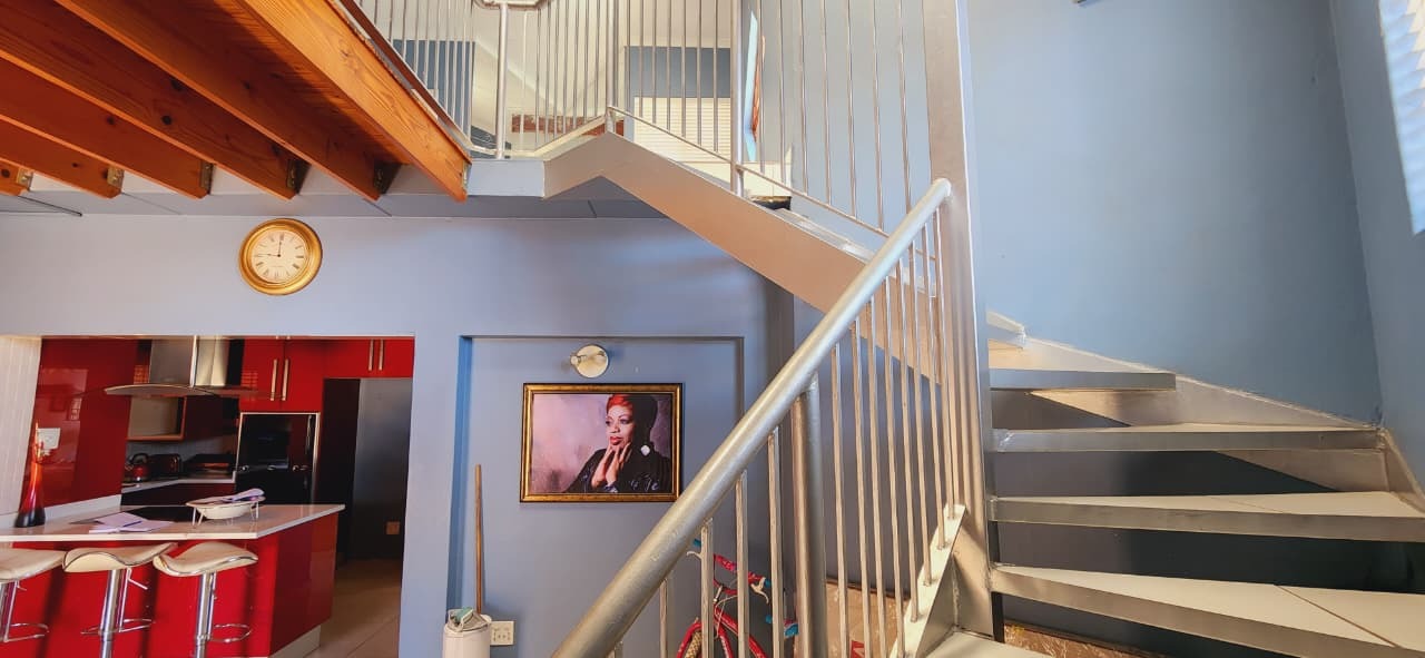 Nestled in the suburban heart of Ridgeway, Johannesburg, this modern residential unit offers a vibrant and convenient lifestyle within a well-maintained complex. The multi-story architecture, featuring terracotta roofs, presents an inviting kerb appeal, setting the tone for the contemporary living spaces within. This property is ideally situated for those seeking a dynamic urban experience combined with the comforts of a secure community. Step inside to discover an intelligently designed open-plan layout that maximises space and natural light. The heart of this home is its striking modern kitchen, boasting bold red high-gloss cabinetry, crisp white countertops, and a practical island with an integrated induction hob and extractor fan. This functional space also features a breakfast bar, perfect for casual dining or entertaining. Seamlessly flowing from the kitchen, the living area is characterised by high ceilings with exposed wooden beams, adding a touch of rustic charm to the contemporary aesthetic. Sleek tiled flooring extends throughout these communal areas, ensuring durability and ease of maintenance, while large windows invite abundant natural light. A contemporary metal staircase serves as a stylish focal point, leading to the upper level and enhancing the property's modern appeal. The inclusion of a built-in bar further elevates the entertainment potential of the living space, making it ideal for social gatherings and a dedicated family TV room. This residence comprises two comfortable bedrooms and two well-appointed bathrooms, providing ample accommodation for residents. The overall modern design language suggests a consistent standard of finish and comfort throughout the private quarters. Beyond the interior, residents benefit from access to a clean and inviting communal swimming pool, complete with a paved surround, offering a refreshing escape during warmer months. The property includes one dedicated parking bay, with covered parking available under shade nets, ensuring convenience and protection for your vehicle. A private garden area and a balcony provide additional outdoor spaces for relaxation and enjoyment. Security is a priority within this totally walled complex, featuring 24-hour security, an access gate, burglar bars, and security gates, offering peace of mind for all residents. Key Features: * Two Bedrooms, Two Bathrooms * Modern Open-Plan Living Area * Striking Red Kitchen with Island & Breakfast Bar * Communal Swimming Pool Access * Dedicated Parking Bay * Private Balcony and Garden * 24-Hour Security with Access Gate, Burglar Bars, and Security Gates * Built-in Bar Feature * High Ceilings with Exposed Wooden Beams and Tiled Flooring