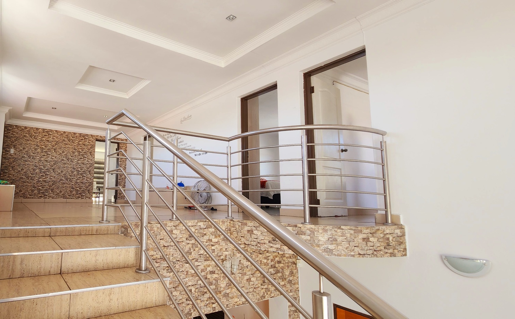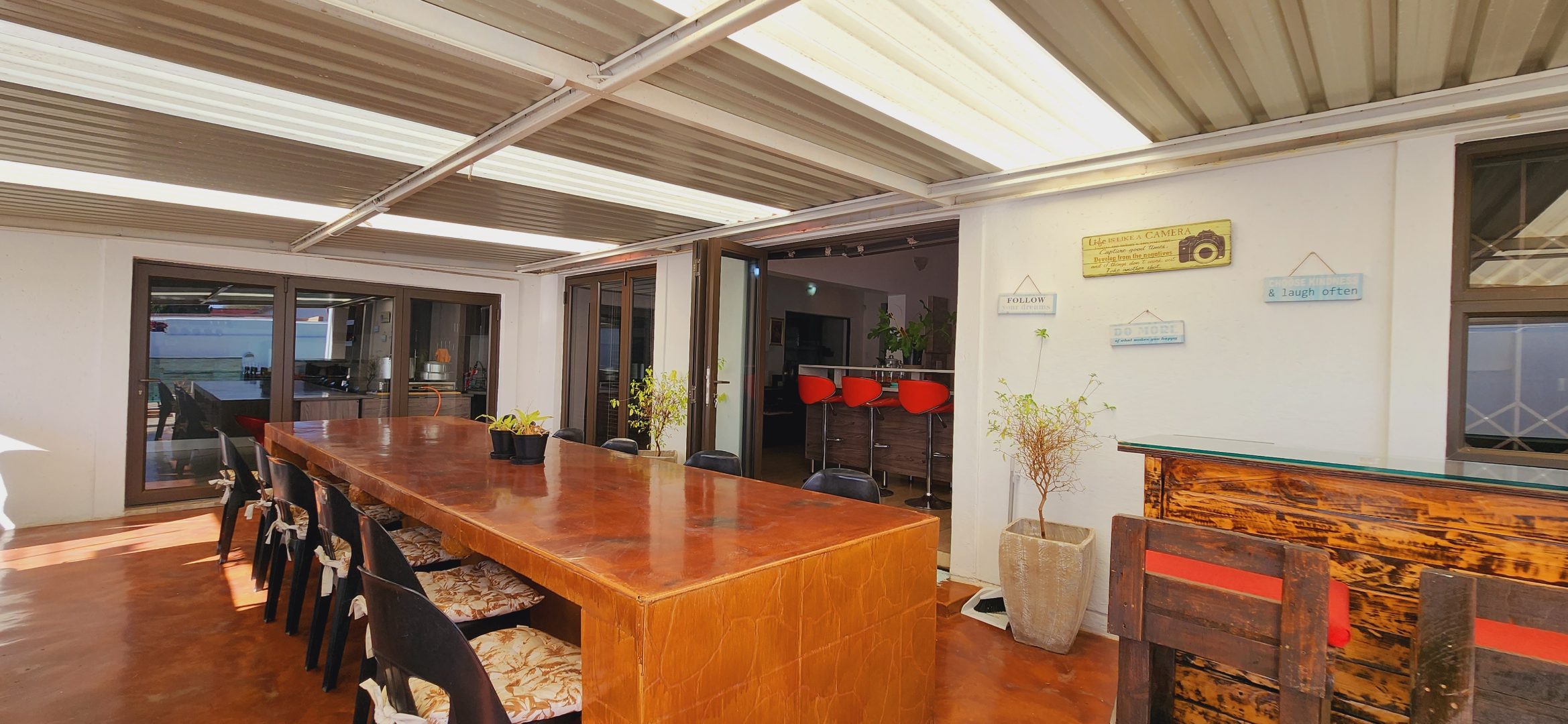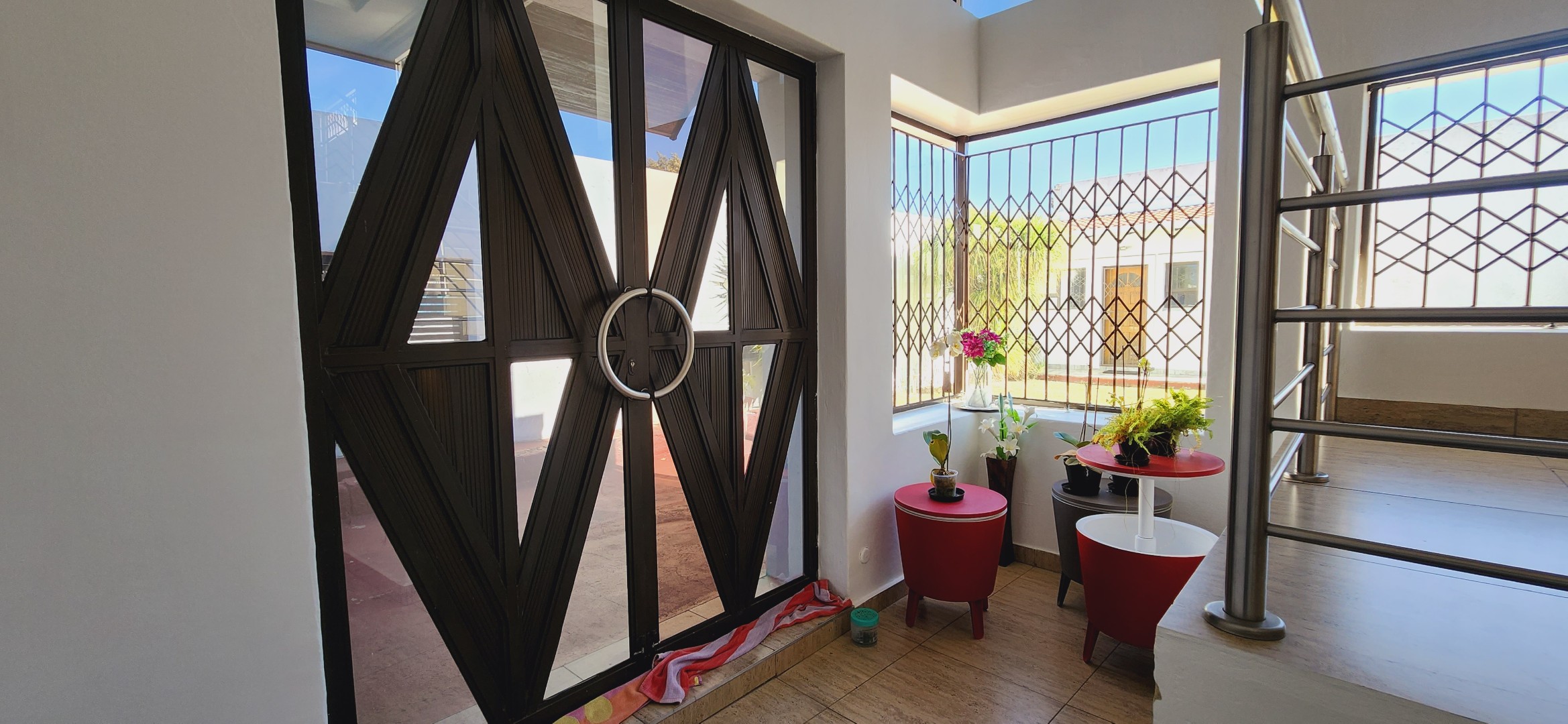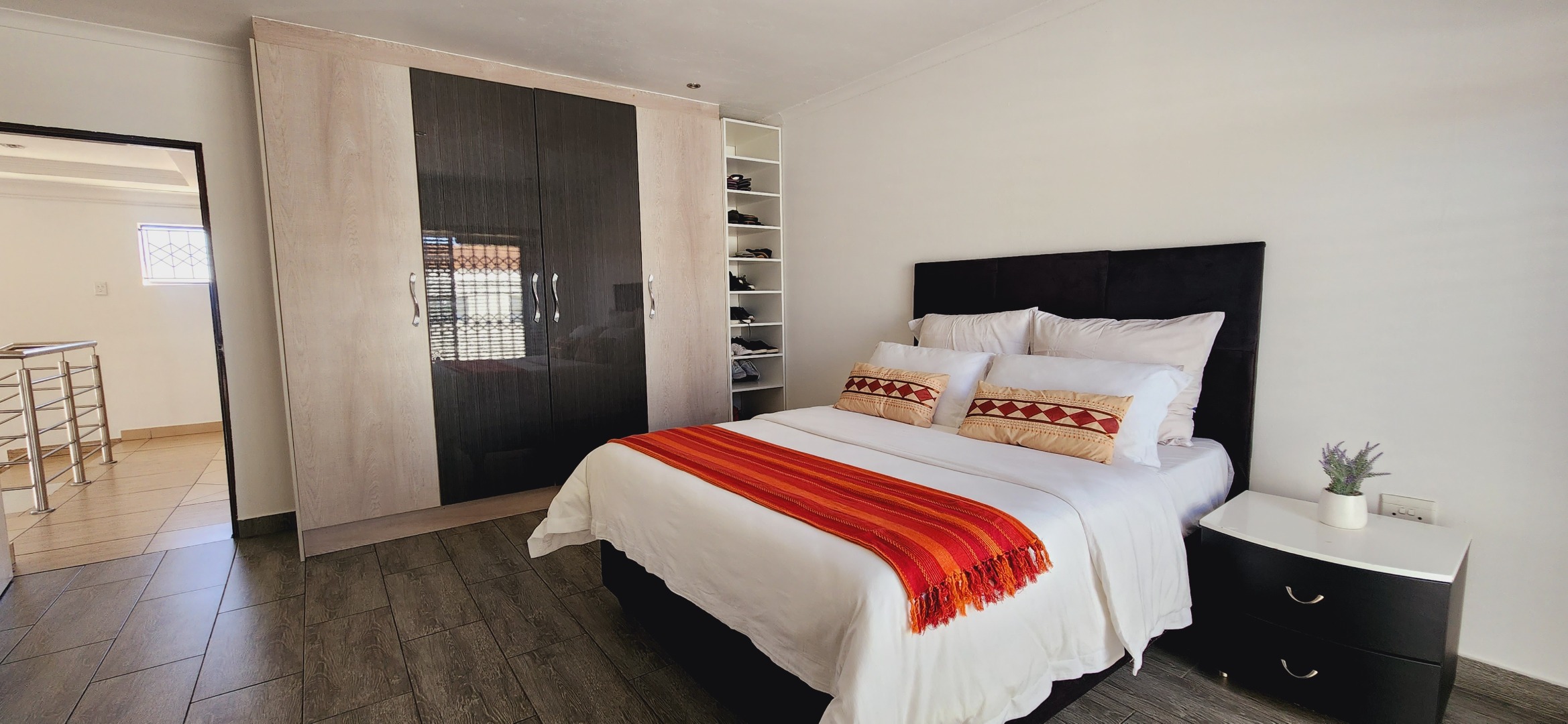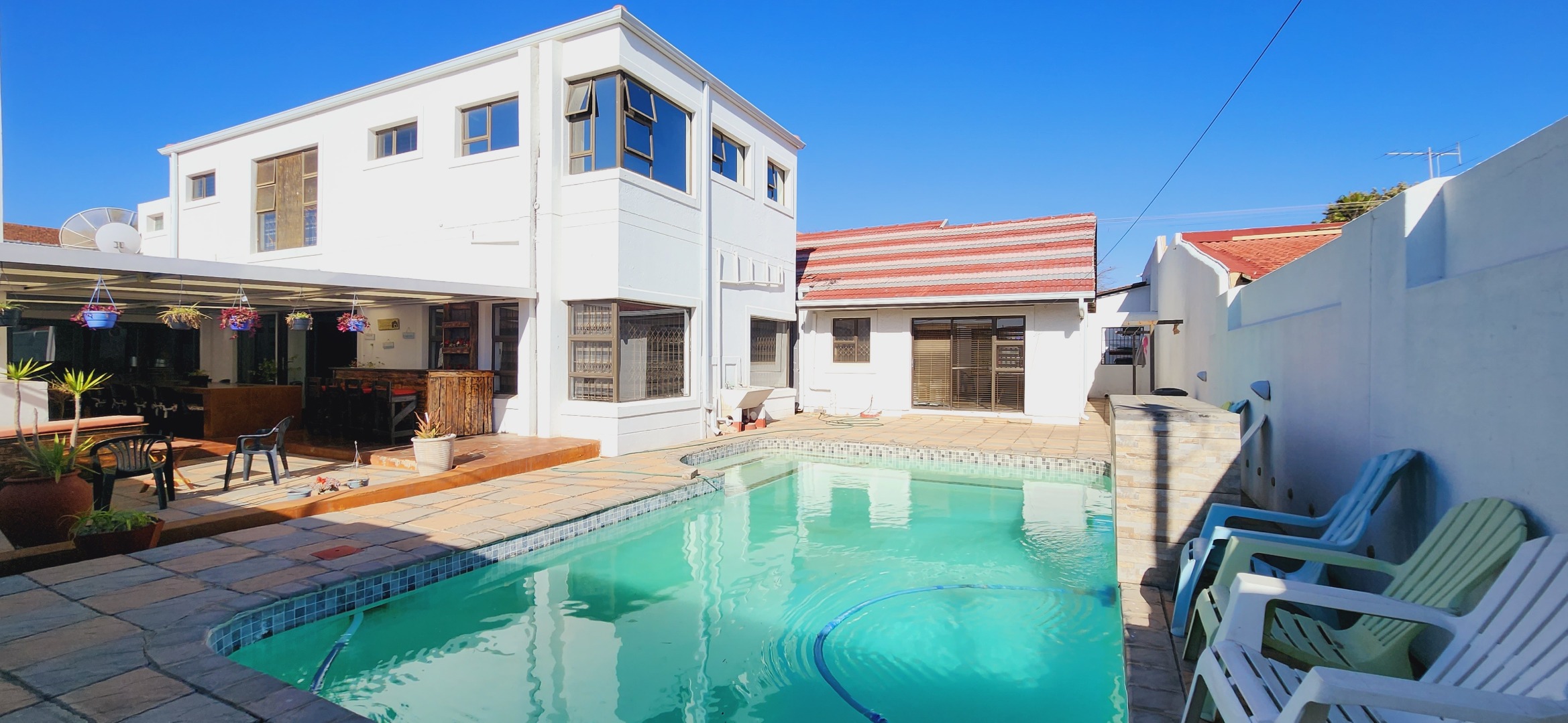 The outdoor area is just as impressive as the inside. The backyard features a sparkling swimming pool, a braai area, a bar area, and multiple entertainment and dining spaces – all surrounded by a well-kept garden. This setup is perfect for hosting gatherings or enjoying leisurely weekends with family and friends.