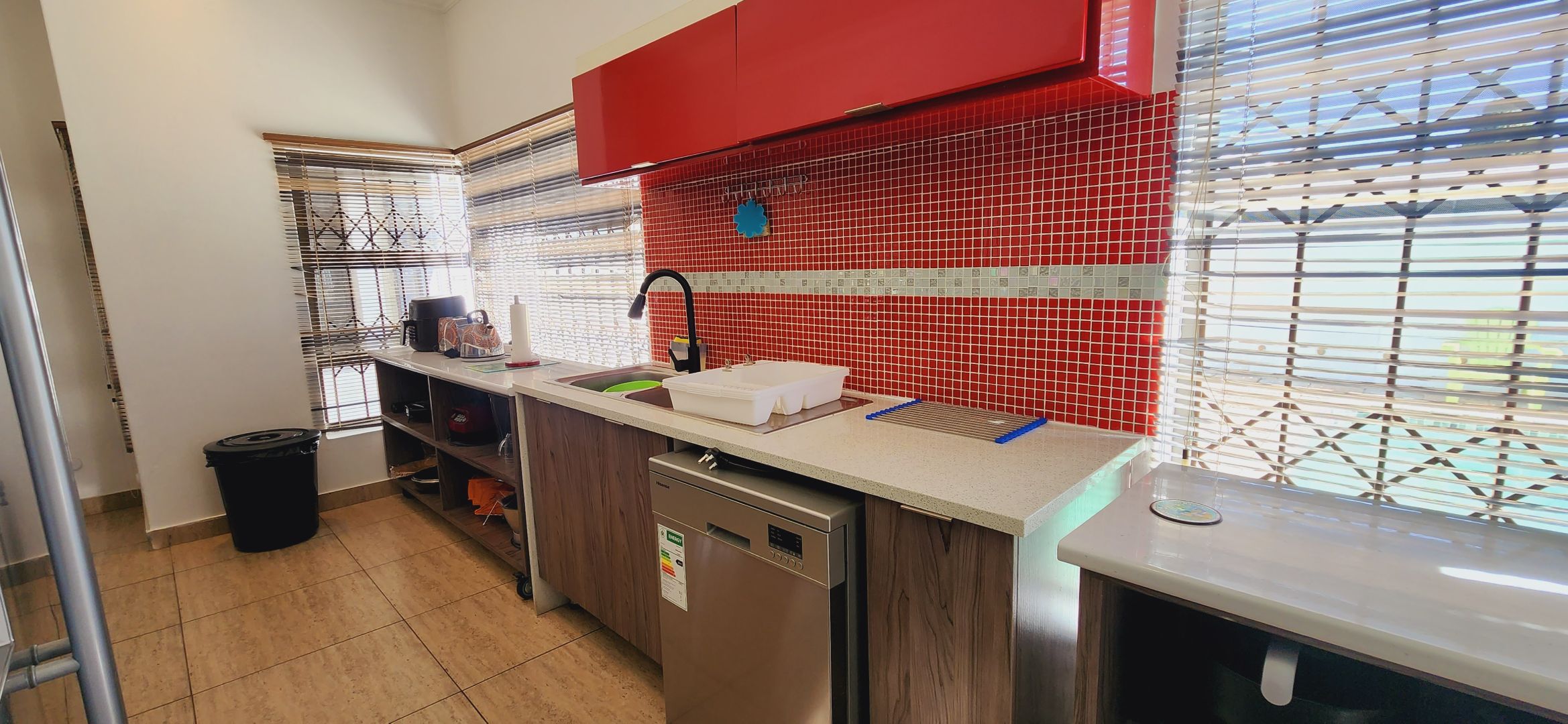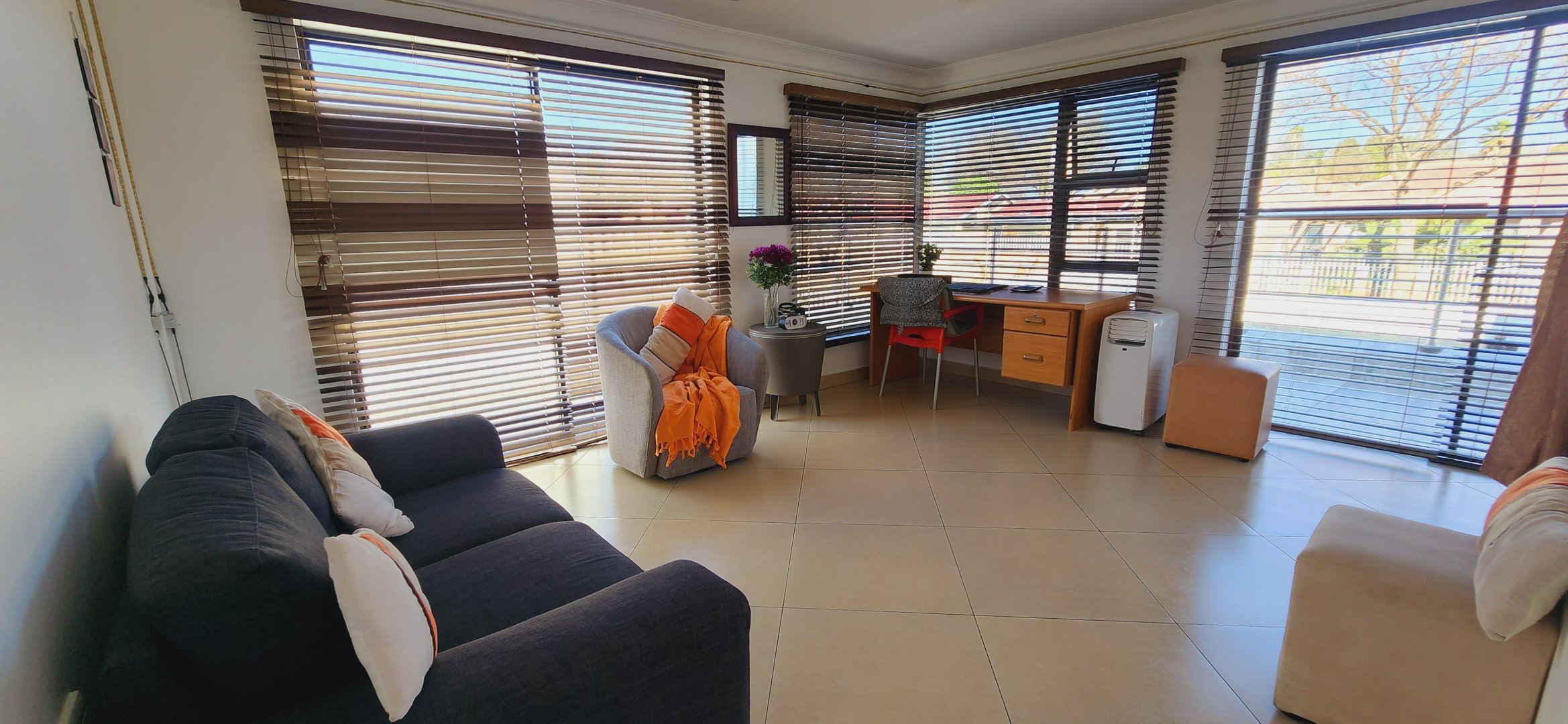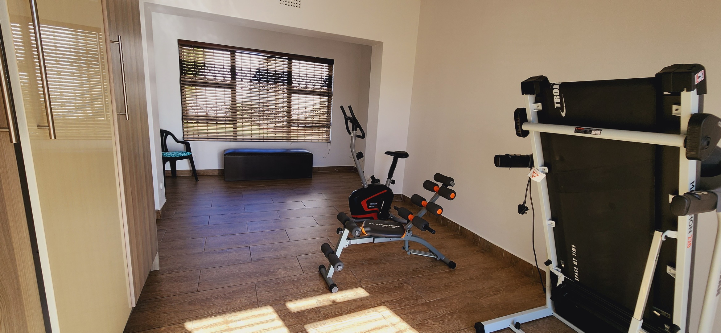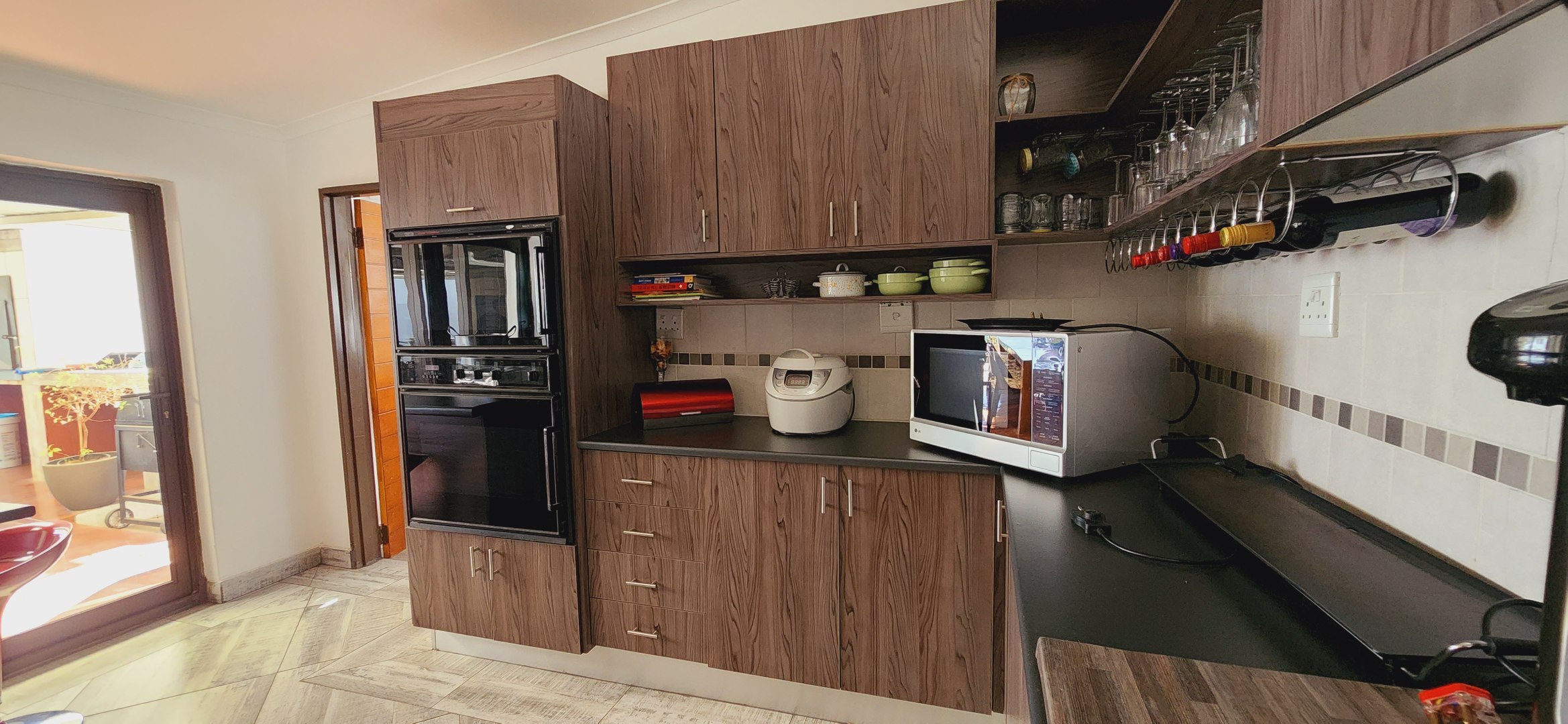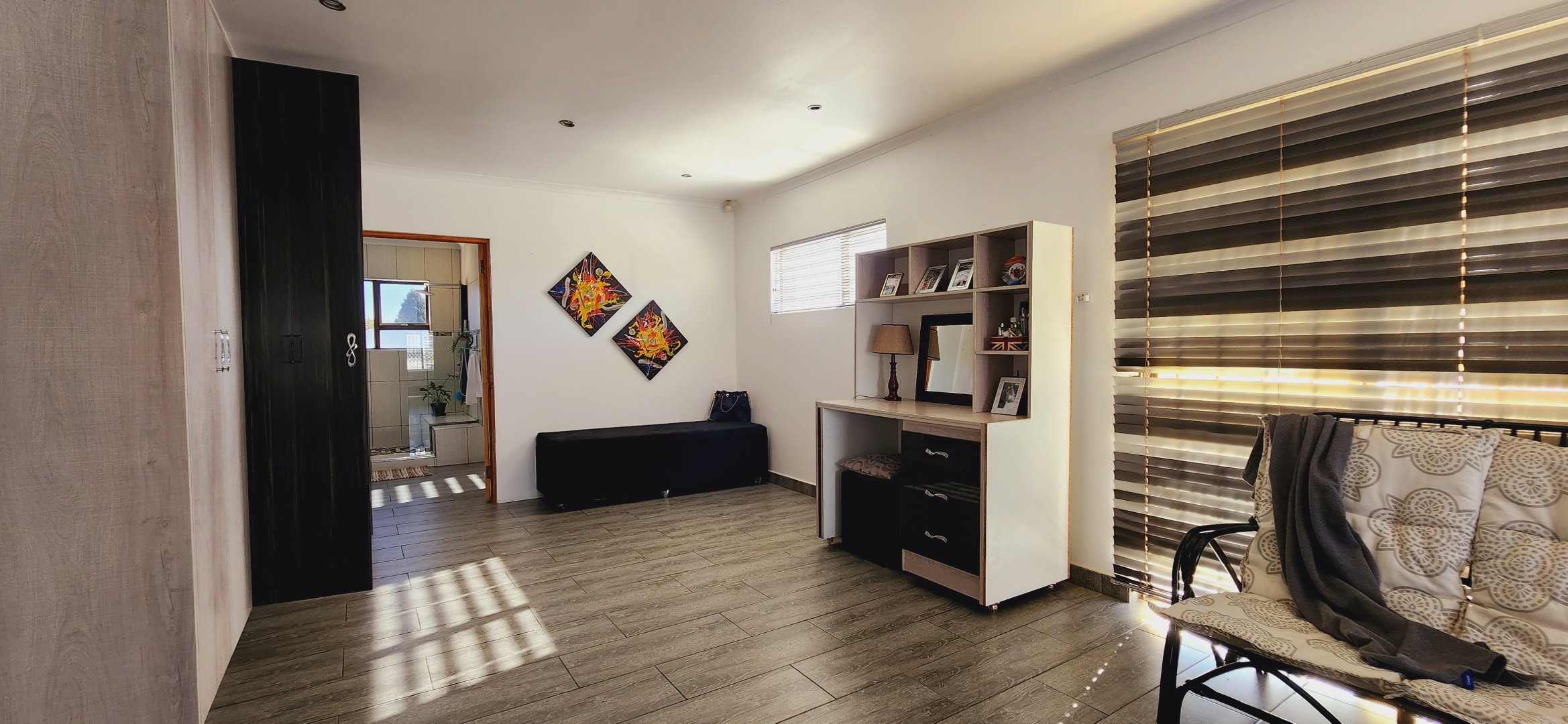 The outdoor area is just as impressive as the inside. The backyard features a sparkling swimming pool, a braai area, a bar area, and multiple entertainment and dining spaces – all surrounded by a well-kept garden. This setup is perfect for hosting gatherings or enjoying leisurely weekends with family and friends.