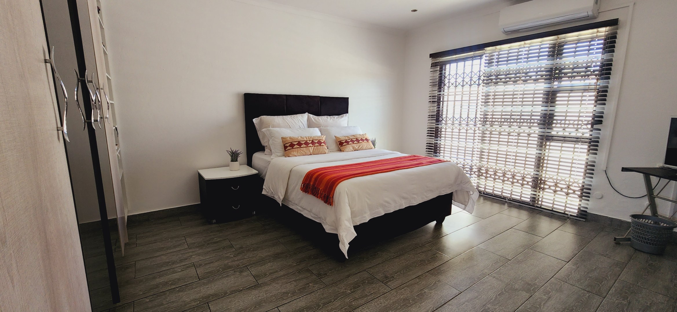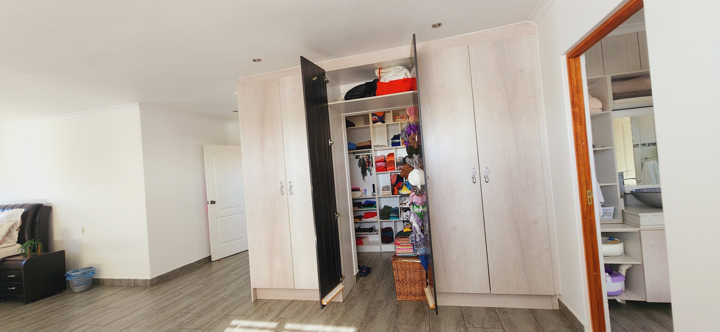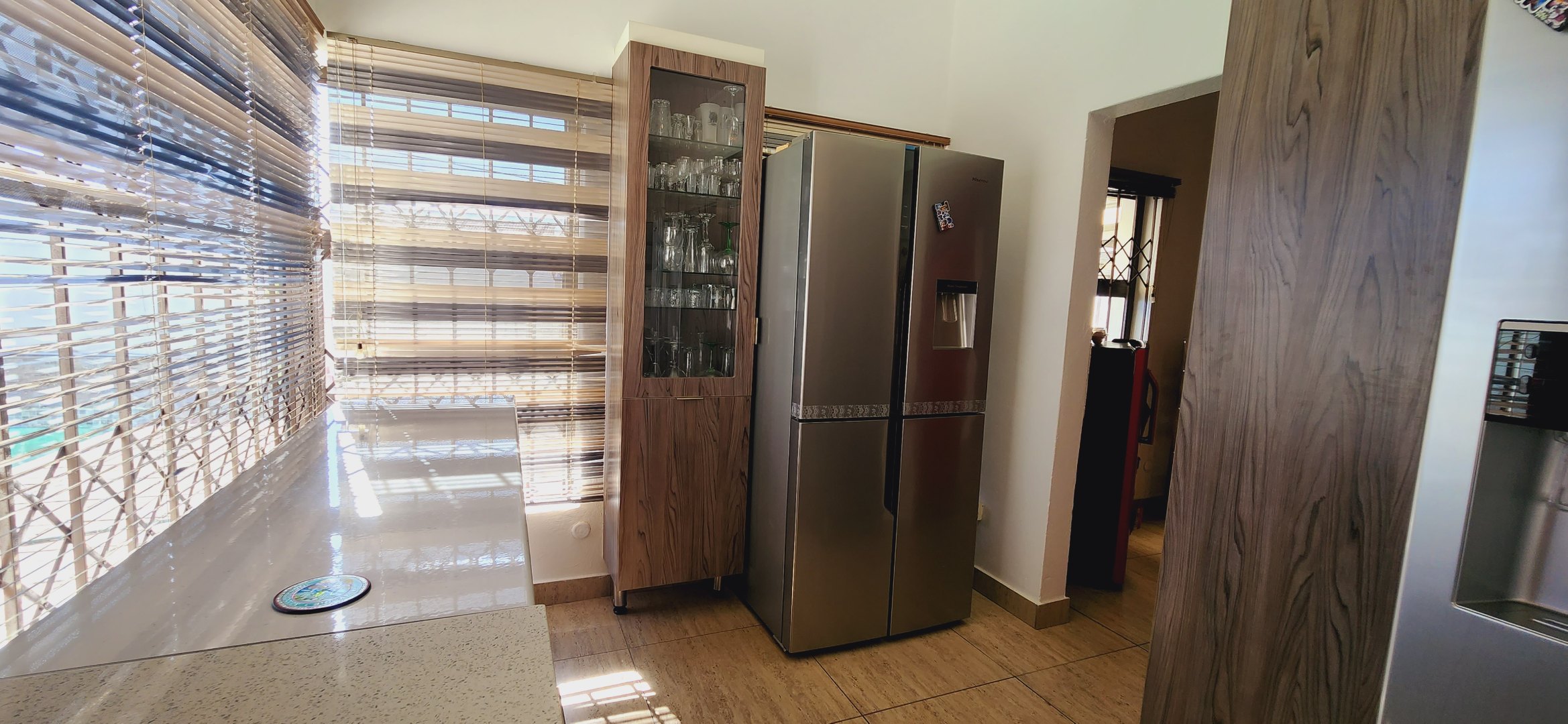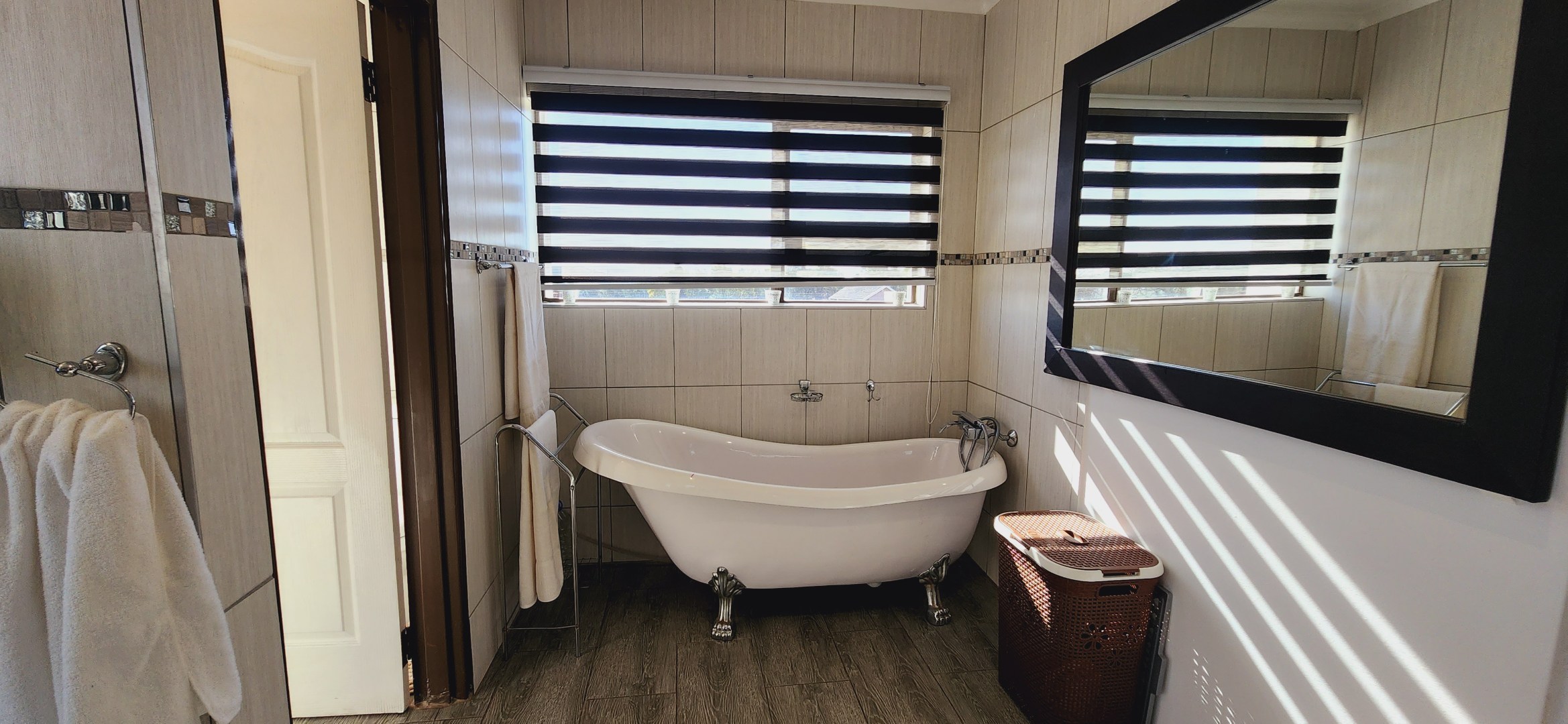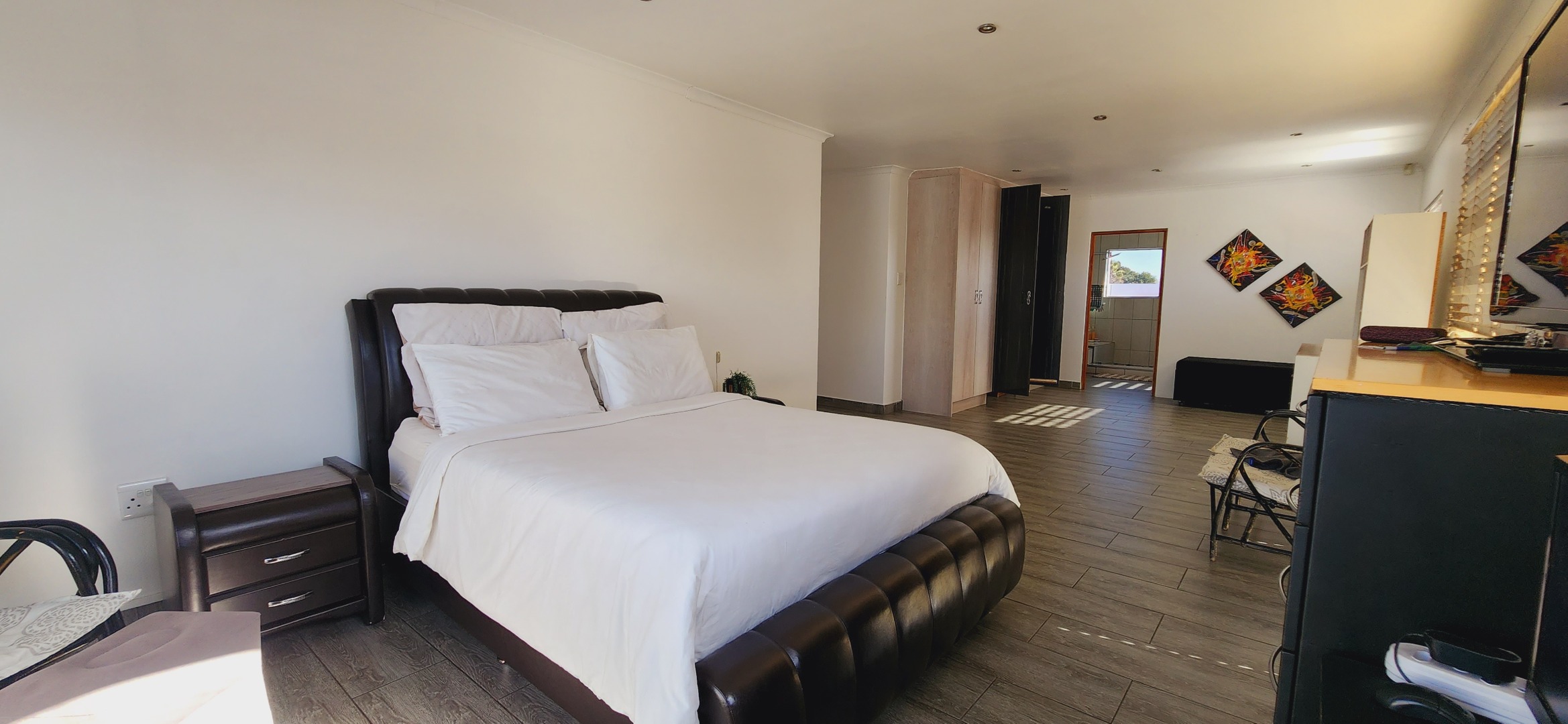 The outdoor area is just as impressive as the inside. The backyard features a sparkling swimming pool, a braai area, a bar area, and multiple entertainment and dining spaces – all surrounded by a well-kept garden. This setup is perfect for hosting gatherings or enjoying leisurely weekends with family and friends.