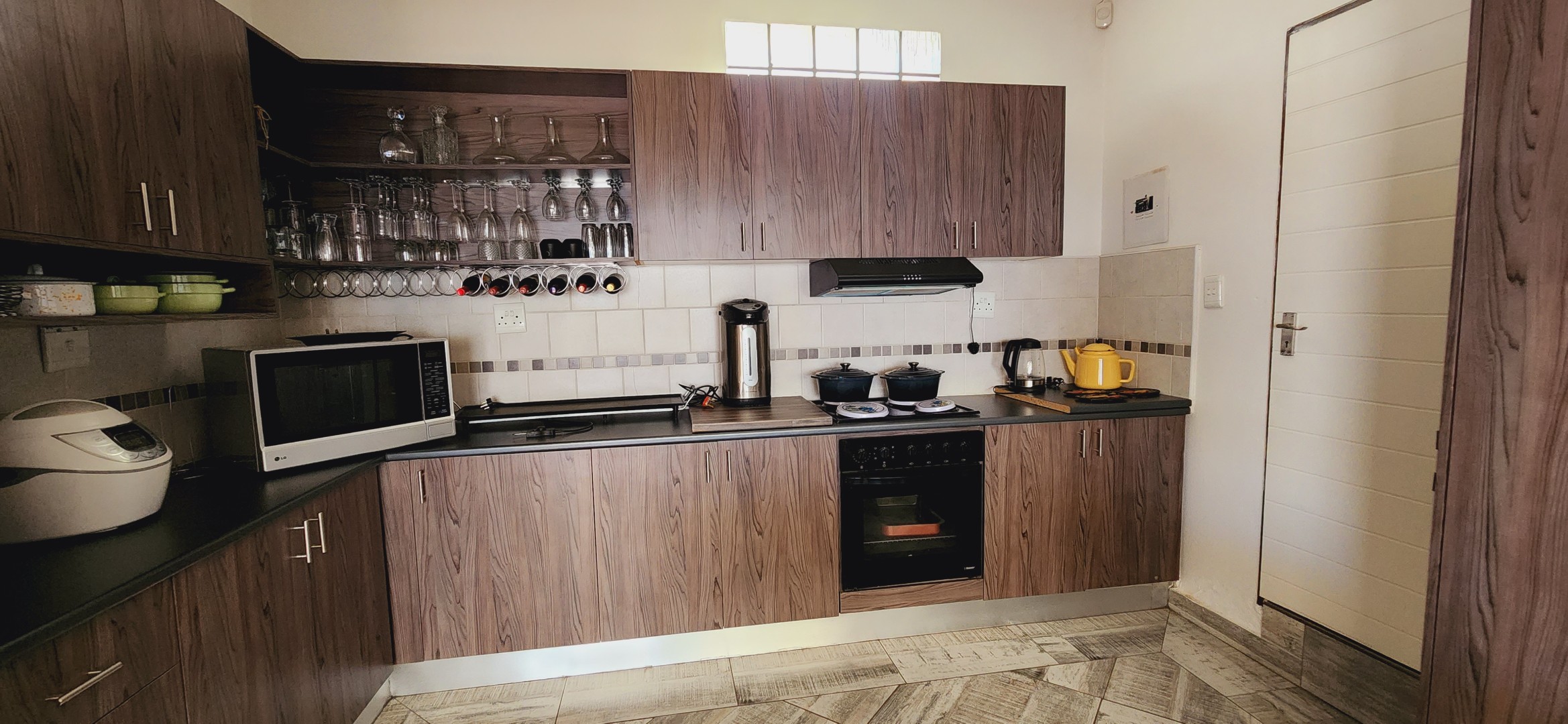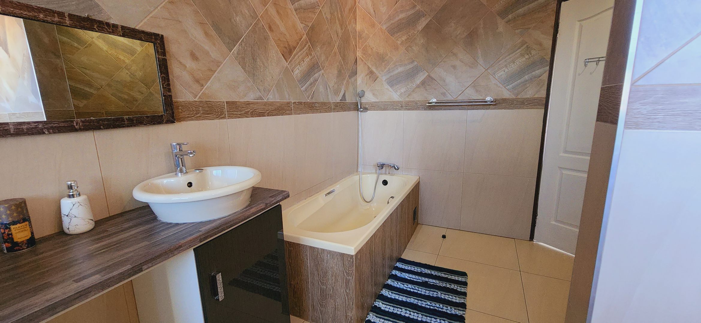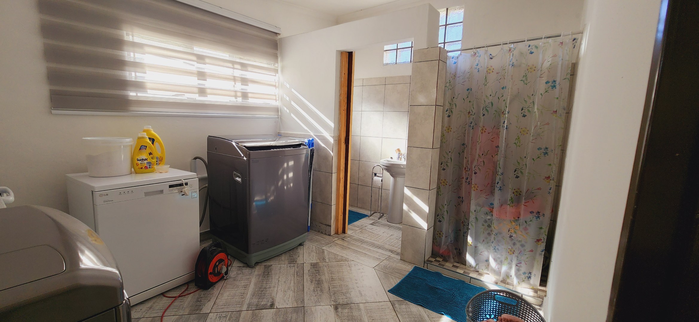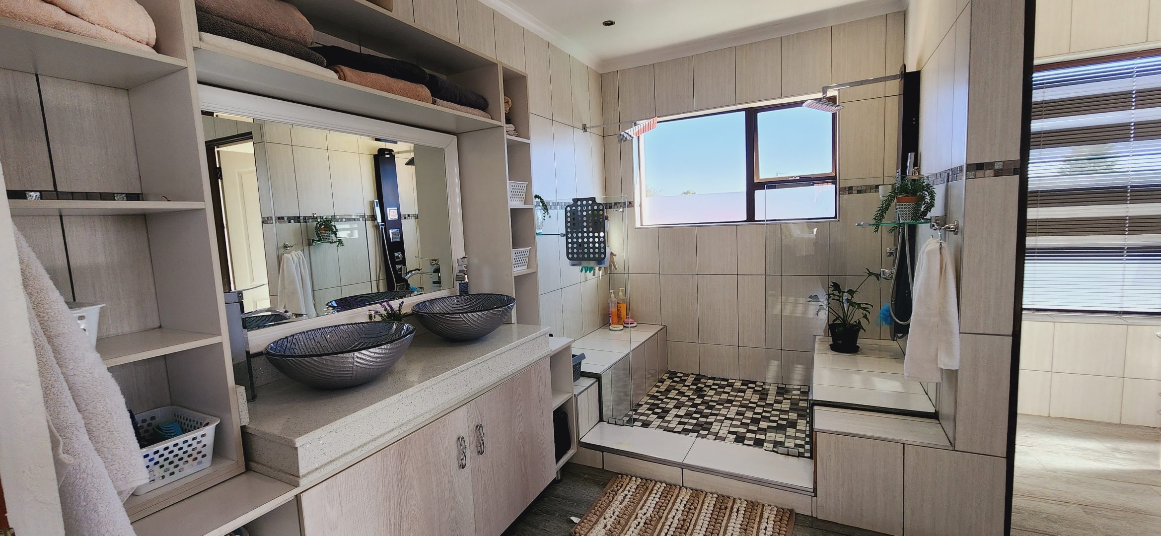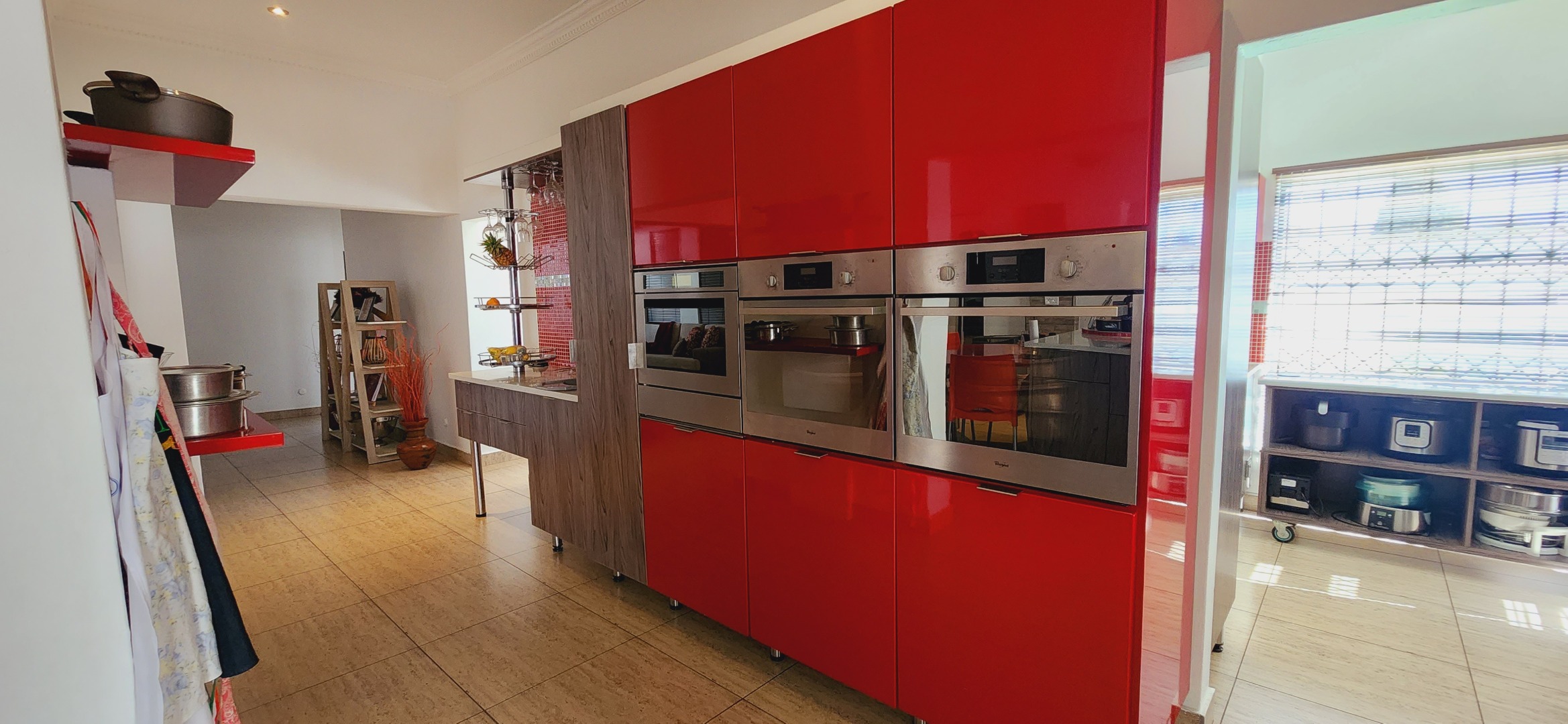 The outdoor area is just as impressive as the inside. The backyard features a sparkling swimming pool, a braai area, a bar area, and multiple entertainment and dining spaces – all surrounded by a well-kept garden. This setup is perfect for hosting gatherings or enjoying leisurely weekends with family and friends.