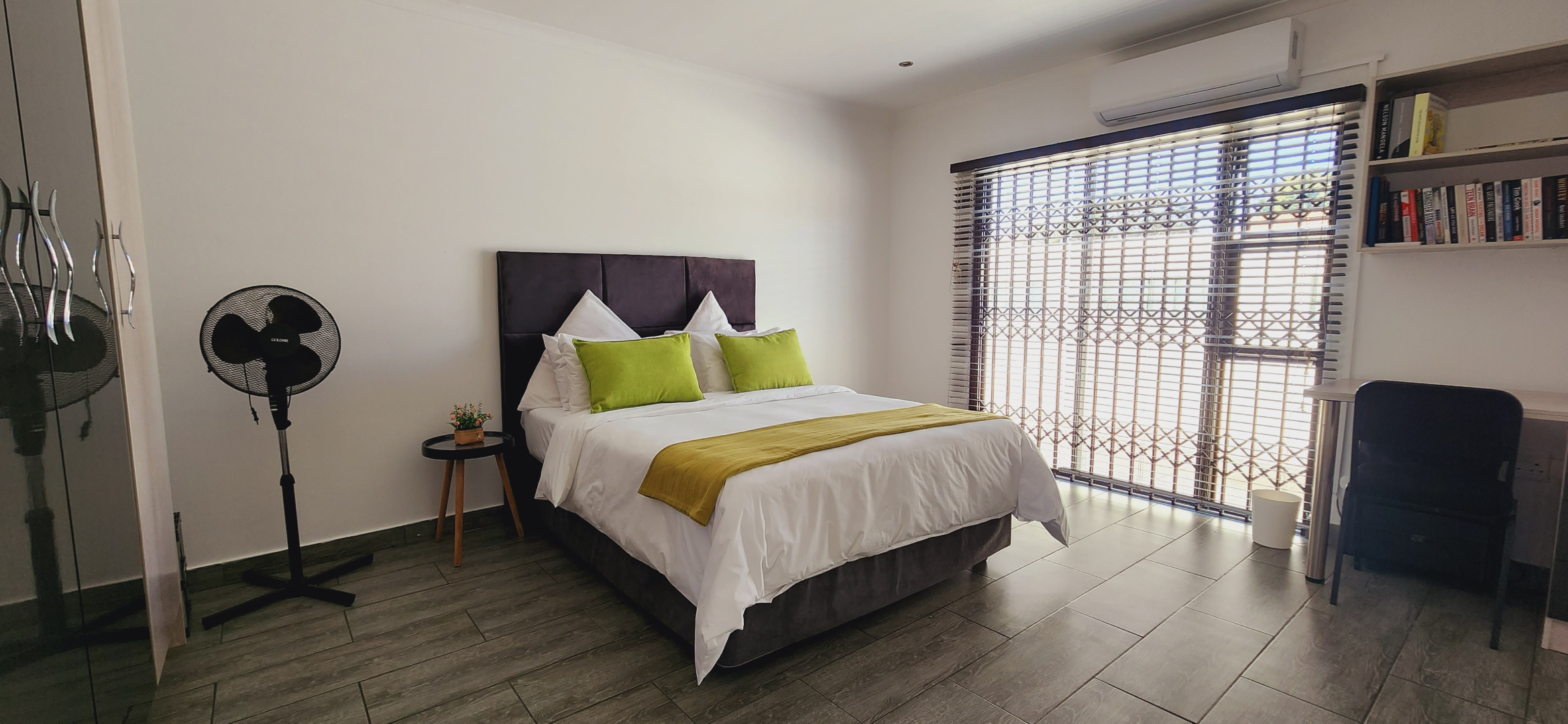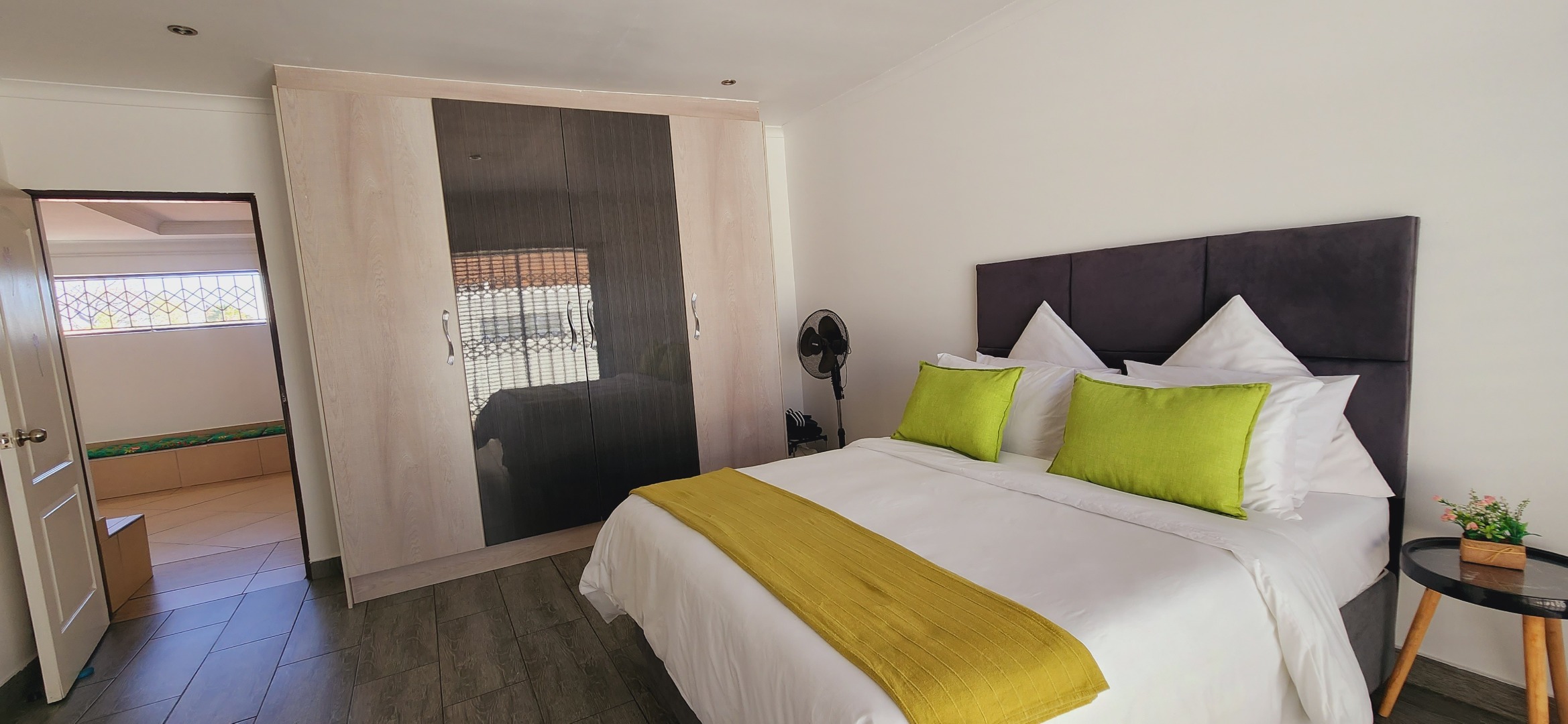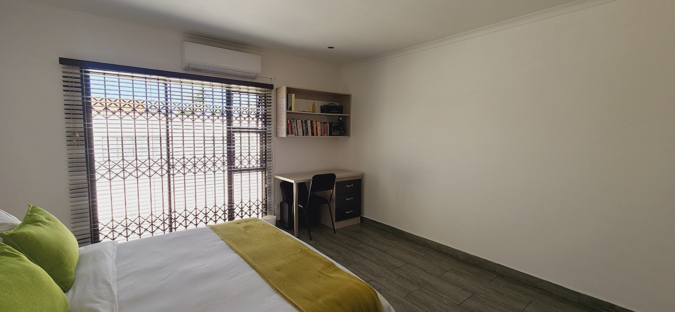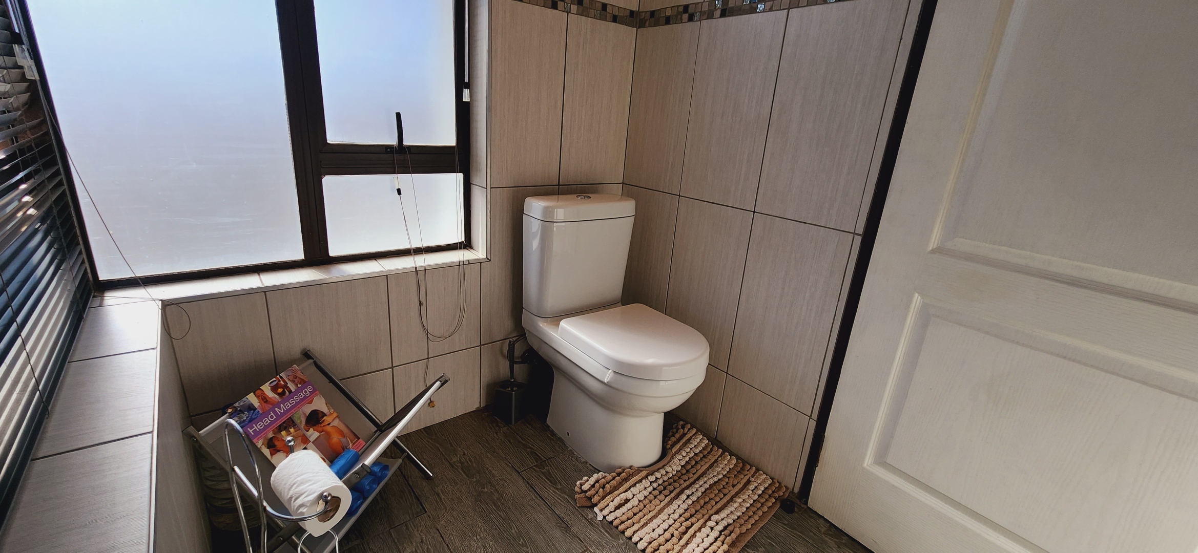 For movie enthusiasts, the home boasts a dedicated cinema room, offering the ideal spot for cozy family nights or private screenings. Just down the passage, there is a spacious bedroom with direct access to the back garden and pool area. This room shares a luxurious bathroom fitted with double basins, a double shower, and a toilet. In addition, the downstairs also features a comfortable en-suite bedroom, providing convenience and privacy for guests or extended family.