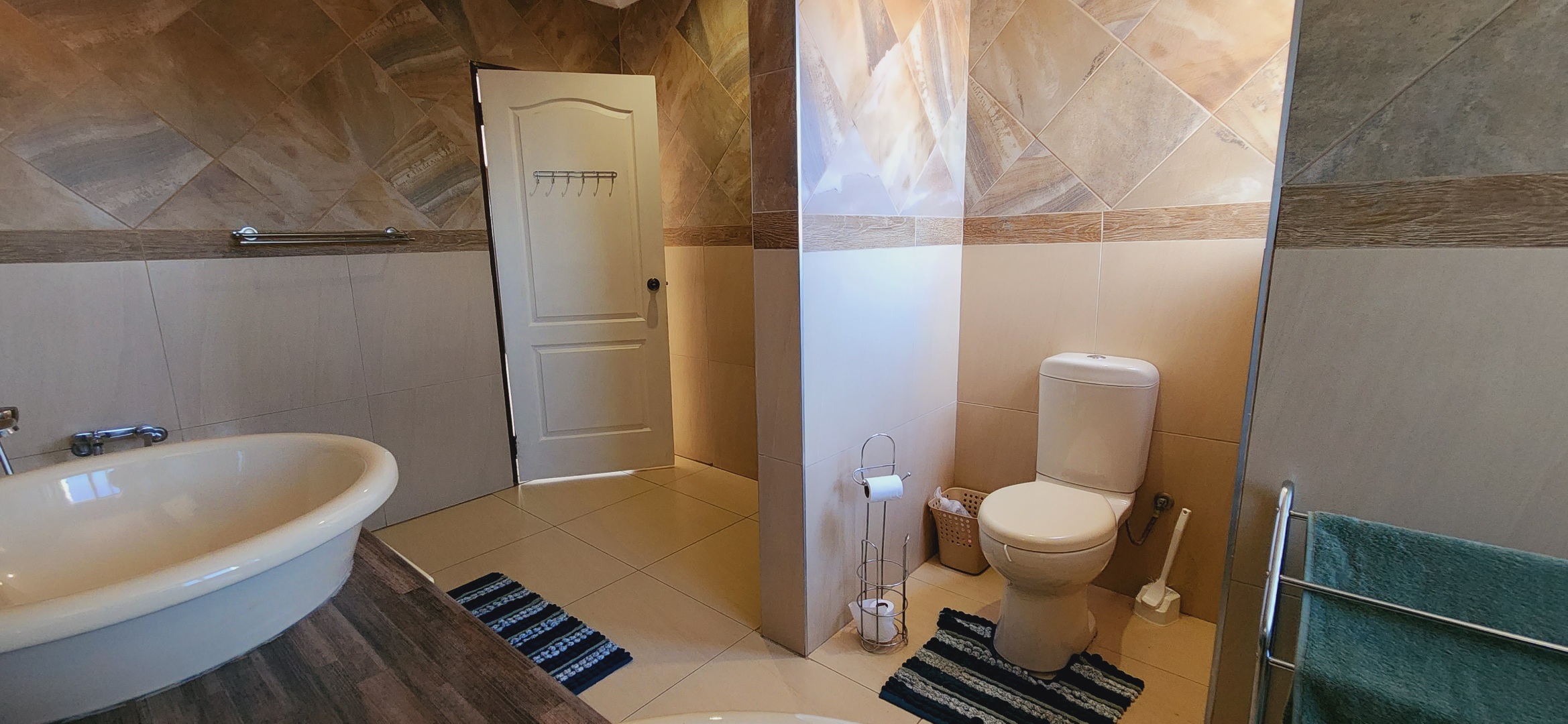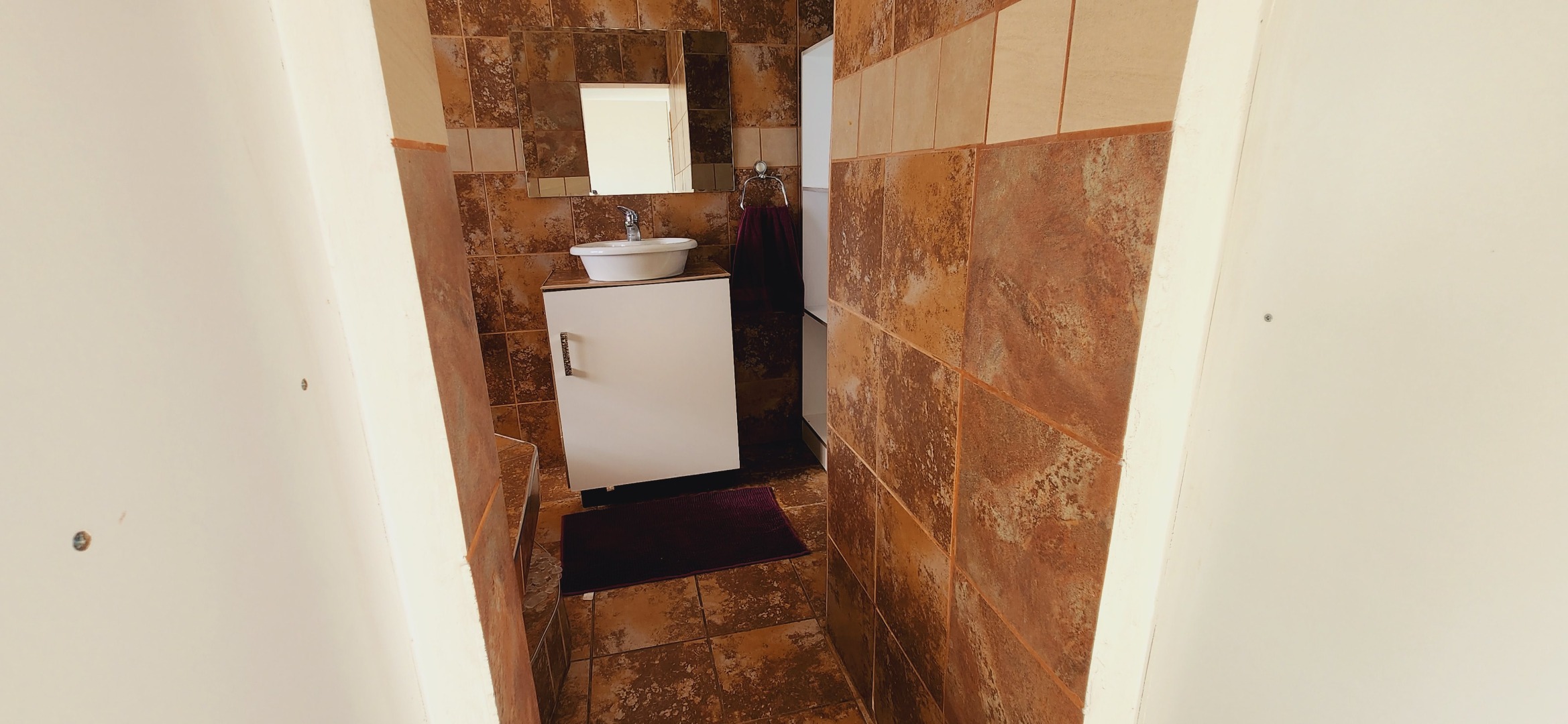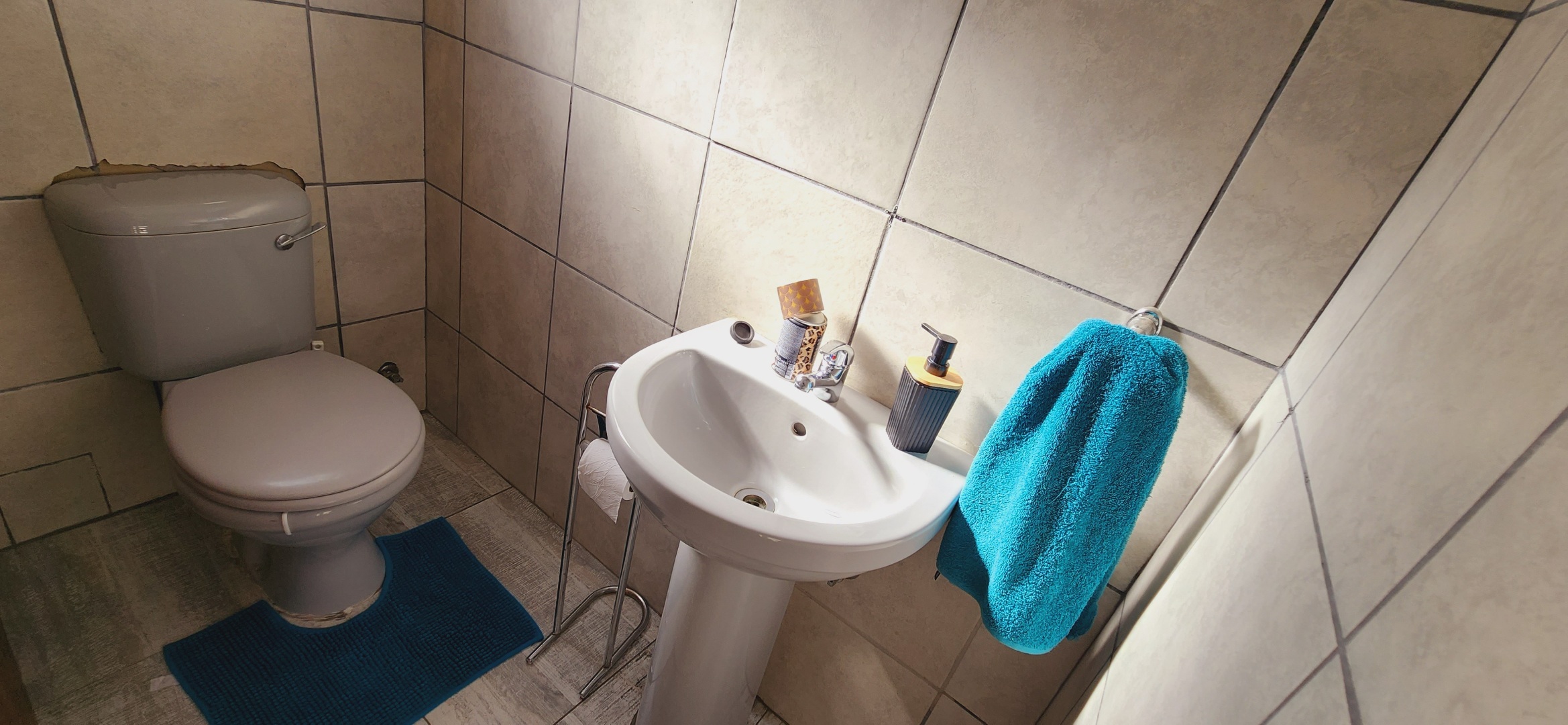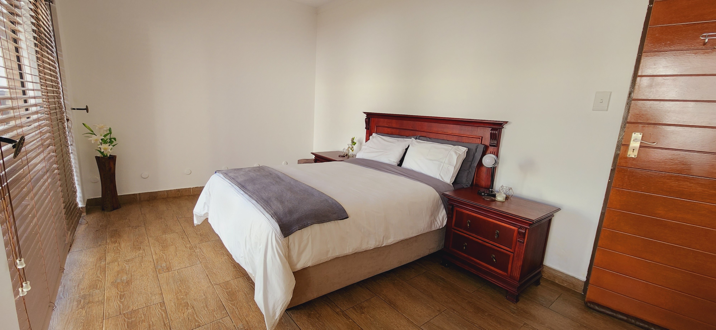 For movie enthusiasts, the home boasts a dedicated cinema room, offering the ideal spot for cozy family nights or private screenings. Just down the passage, there is a spacious bedroom with direct access to the back garden and pool area. This room shares a luxurious bathroom fitted with double basins, a double shower, and a toilet. In addition, the downstairs also features a comfortable en-suite bedroom, providing convenience and privacy for guests or extended family.
