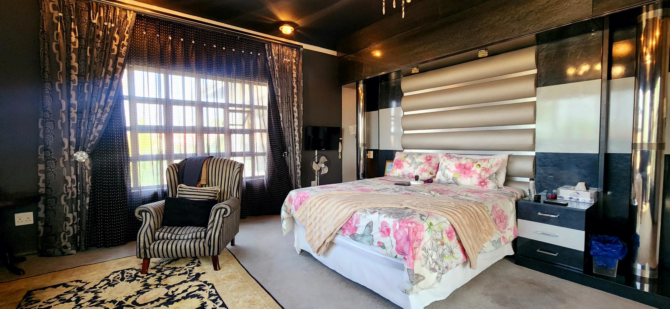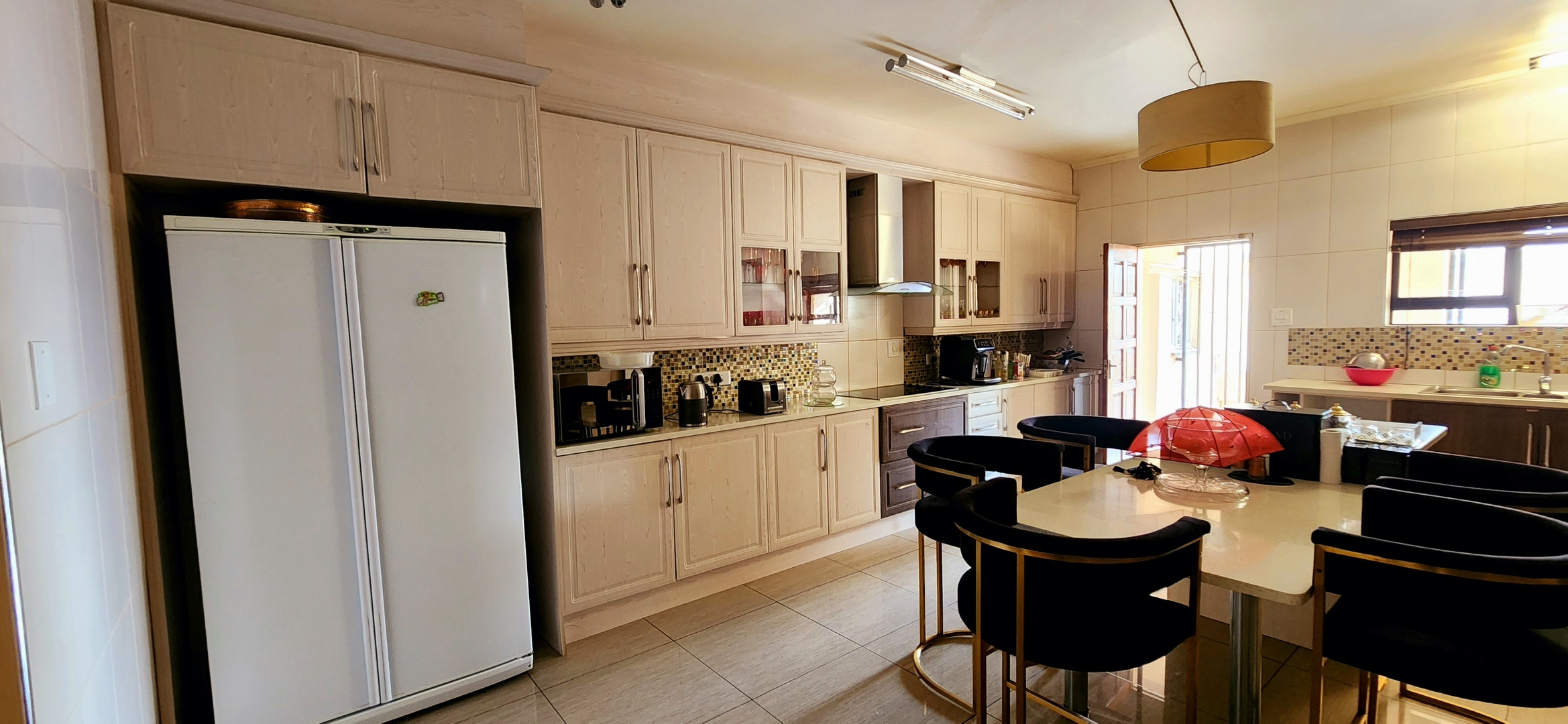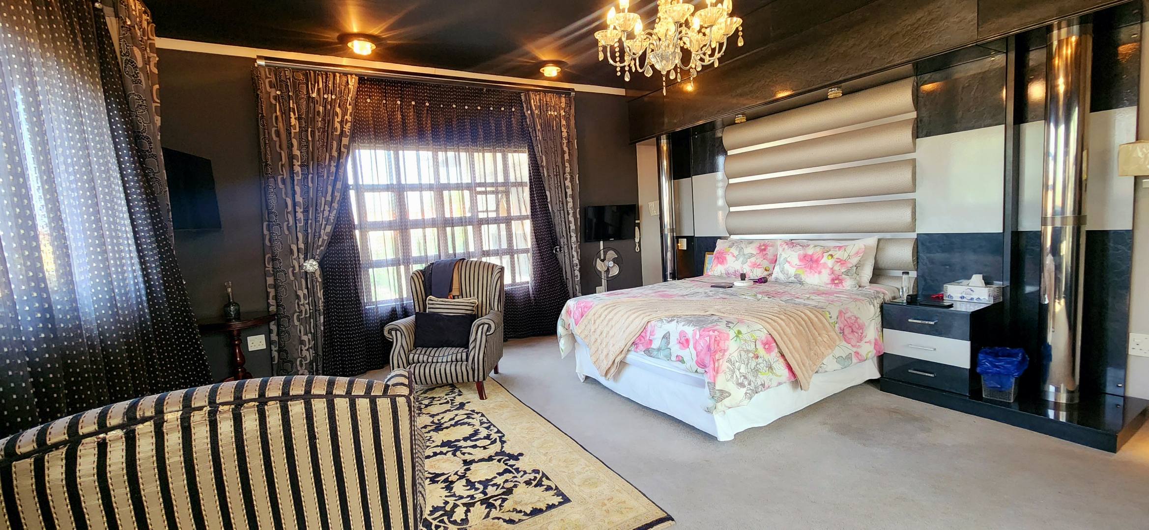 The sense of luxury extends outdoors, with balconies connected to the secondary kitchen and bedrooms offering peaceful retreats for morning coffees, evening relaxation, or simply enjoying the surrounding views. Attention to comfort has been prioritized with air conditioning fitted in both lounges and the TV room, while the indulgence of underfloor heating in the upstairs lounge adds an extra layer of coziness during cooler months. Practicality is not overlooked, with domestic quarters complete with a kitchenette providing added accommodation, a Hollywood-style three-car garage, and additional parking space for approximately six vehicles. The property offers excellent accessibility through two separate entrance gates, ensuring both convenience and functionality for residents and guests. Safety and peace of mind are paramount, with comprehensive security features including an electric fence, alarm system, strategically placed beams, burglar bars, and closed-circuit television surveillance. To top it all off, an inverter has been installed to provide reliable backup power during load shedding, making the home as practical as it is luxurious. This Robertsham gem offers not just a house, but a complete lifestyle, combining elegance, comfort, and modern security to meet the needs of even the most discerning homeowner.
