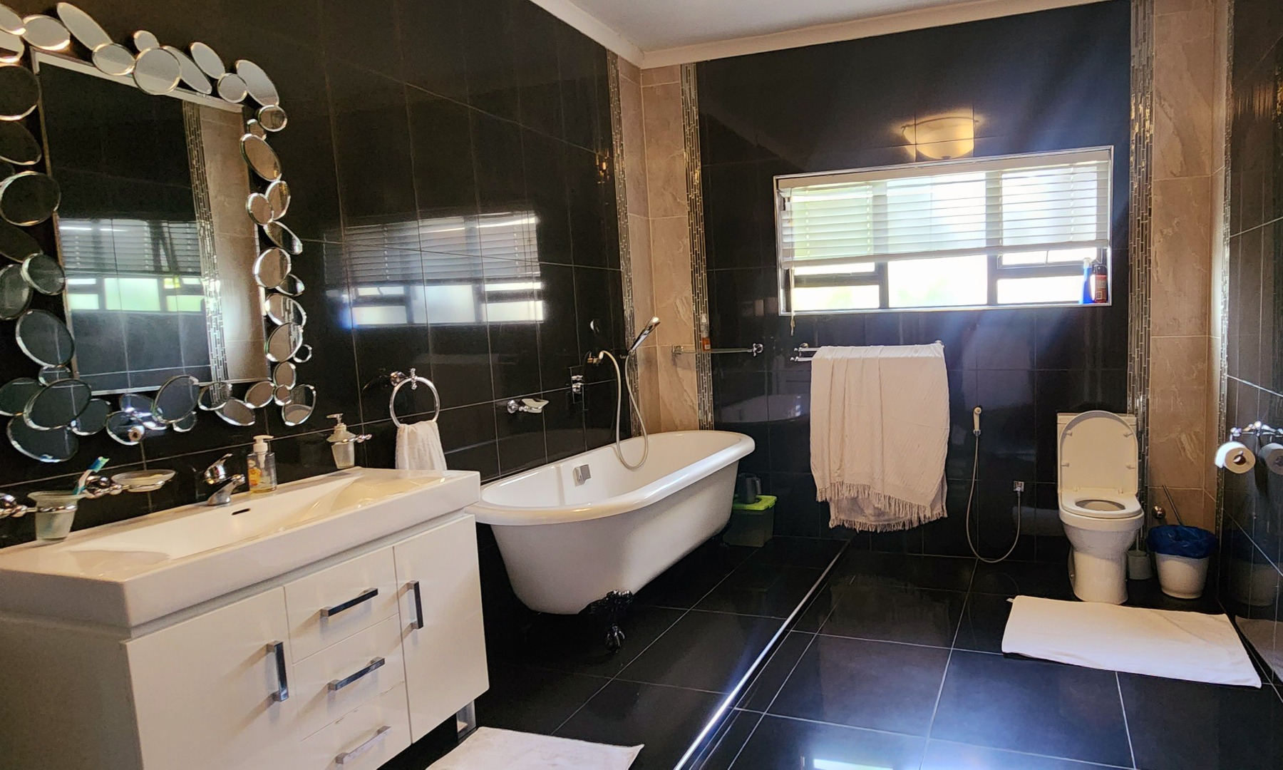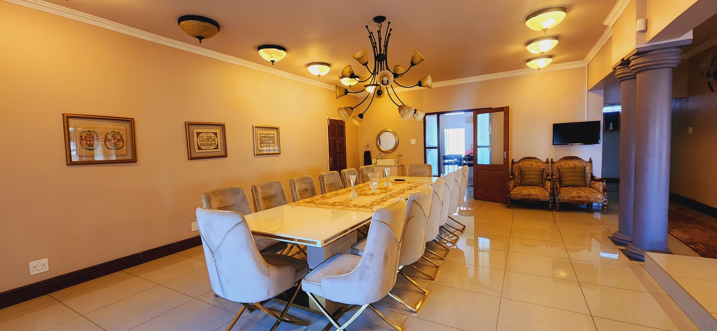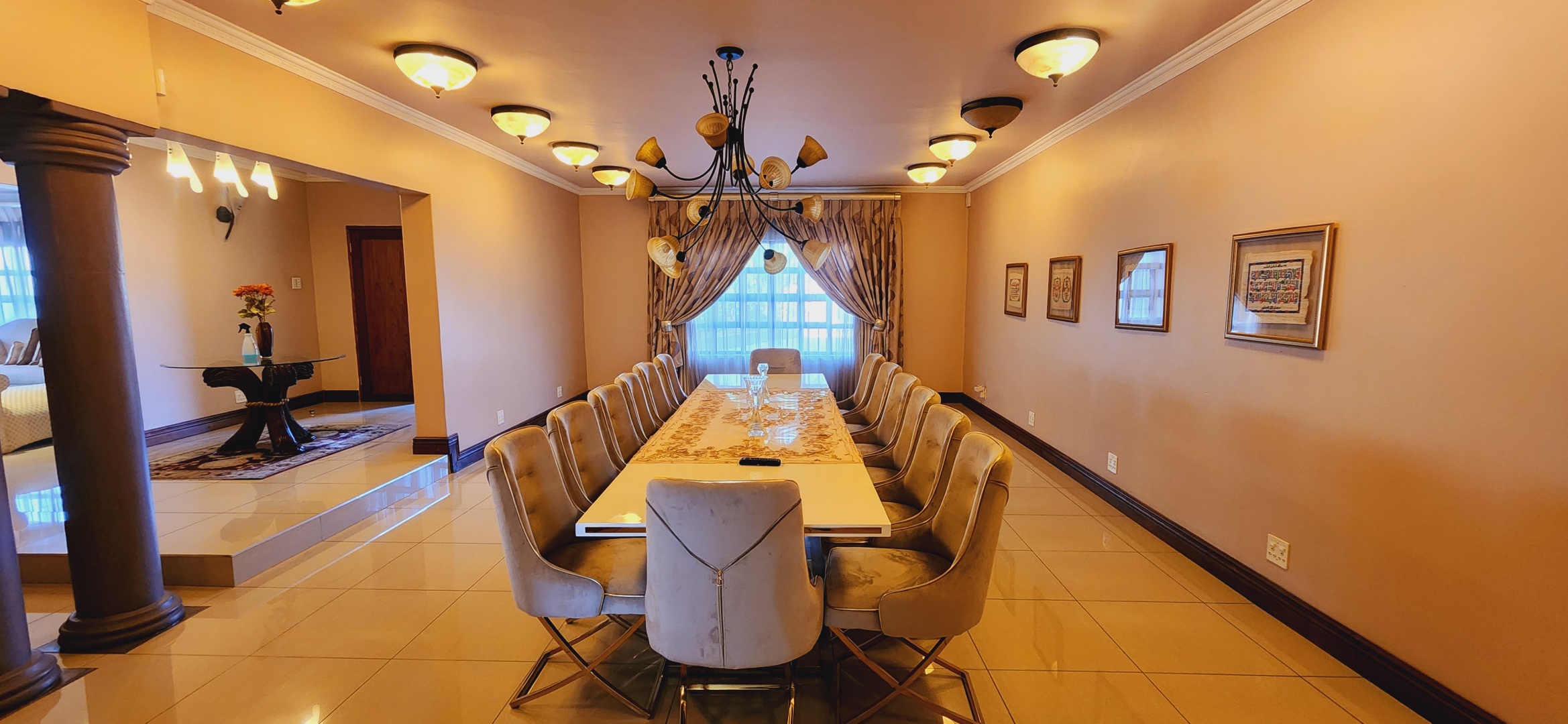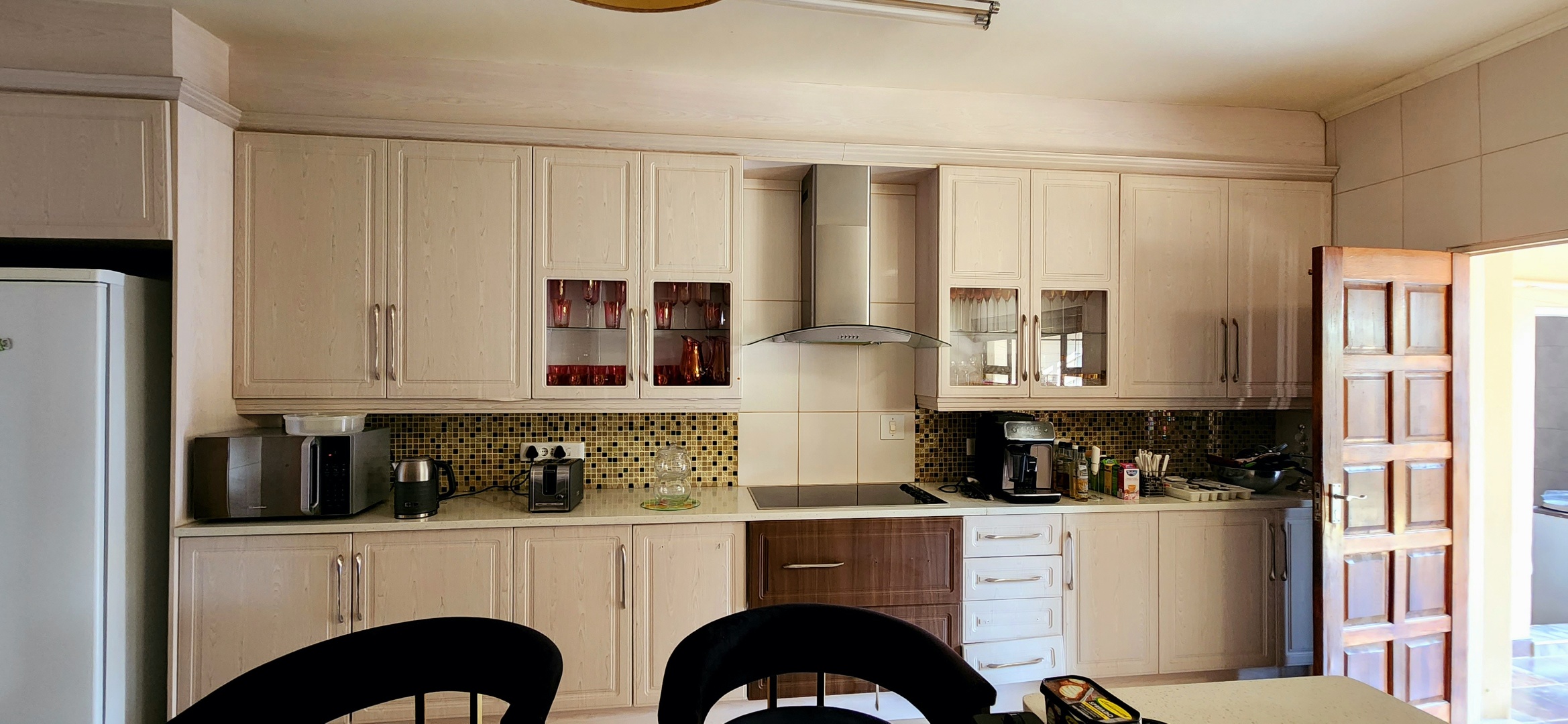 The sense of luxury extends outdoors, with balconies connected to the secondary kitchen and bedrooms offering peaceful retreats for morning coffees, evening relaxation, or simply enjoying the surrounding views. Attention to comfort has been prioritized with air conditioning fitted in both lounges and the TV room, while the indulgence of underfloor heating in the upstairs lounge adds an extra layer of coziness during cooler months. Practicality is not overlooked, with domestic quarters complete with a kitchenette providing added accommodation, a Hollywood-style three-car garage, and additional parking space for approximately six vehicles. The property offers excellent accessibility through two separate entrance gates, ensuring both convenience and functionality for residents and guests. Safety and peace of mind are paramount, with comprehensive security features including an electric fence, alarm system, strategically placed beams, burglar bars, and closed-circuit television surveillance. To top it all off, an inverter has been installed to provide reliable backup power during load shedding, making the home as practical as it is luxurious. This Robertsham gem offers not just a house, but a complete lifestyle, combining elegance, comfort, and modern security to meet the needs of even the most discerning homeowner.