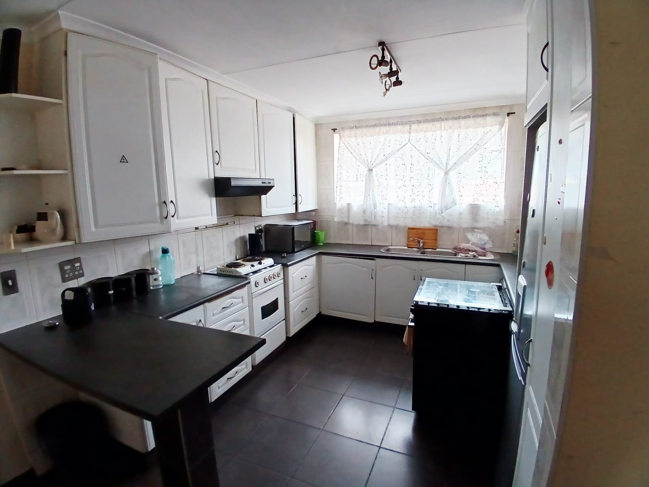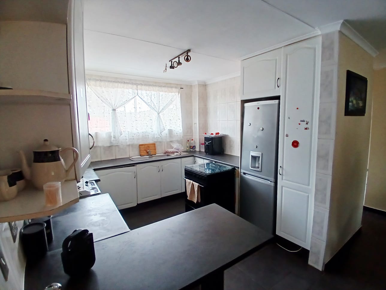 Upon entering, the interior reveals a functional layout designed for comfortable living. The property includes a single lounge area, offering a dedicated space for relaxation and social gatherings. The kitchen, a central hub, is equipped to meet daily needs, featuring an open-plan design that enhances the sense of space and connectivity within the living areas. Tiled flooring throughout ensures durability and ease of maintenance, while neutral wall colours provide a versatile canvas for personal touches.