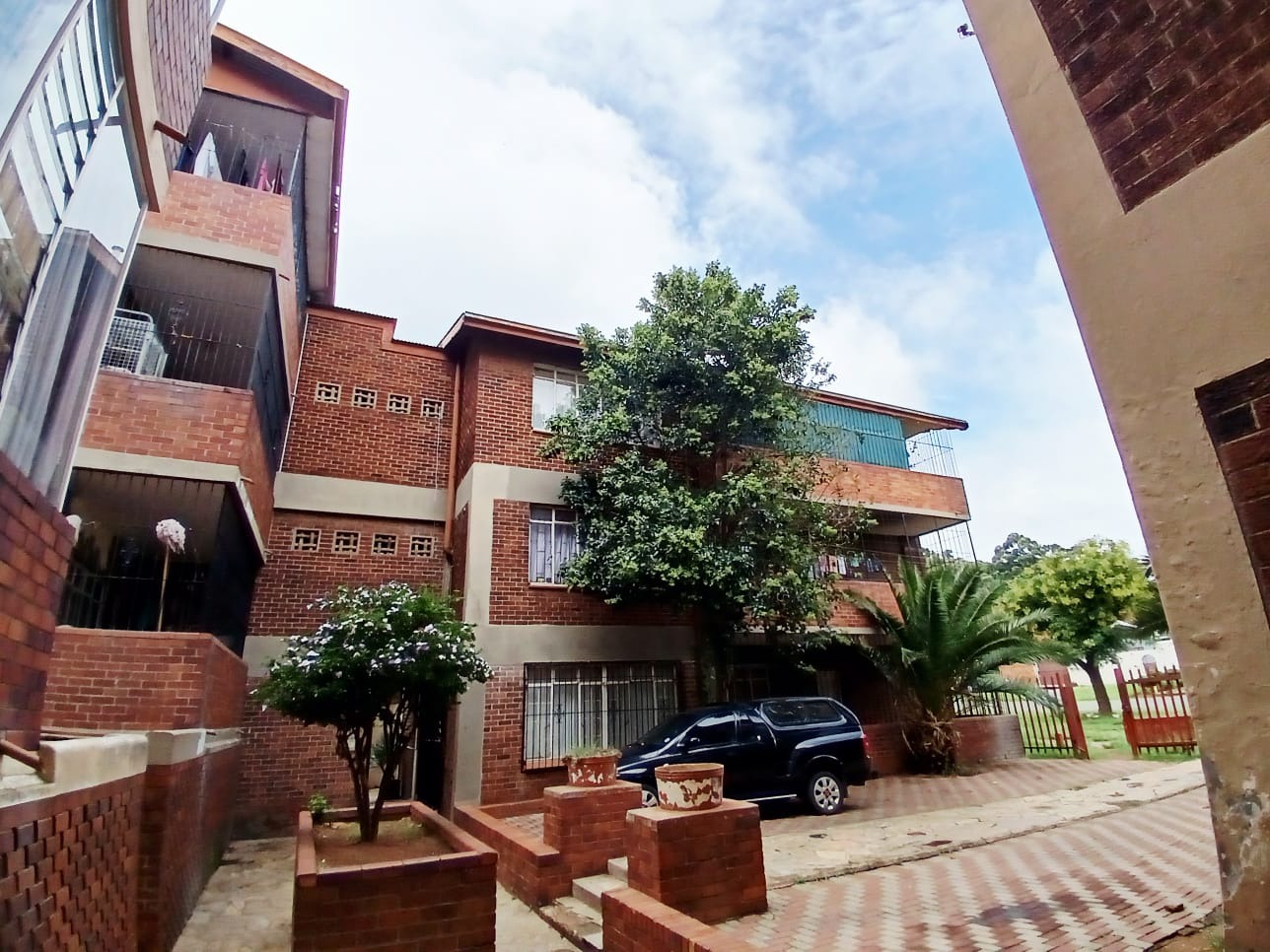 Discover a practical and well-located residential opportunity in the established suburban area of Turffontein, Johannesburg. This multi-story complex presents a durable brick exterior, offering a robust structure with individual balconies that provide private outdoor spaces for residents. The property is secured by perimeter fencing and features paved access, contributing to a neat and organized frontage.