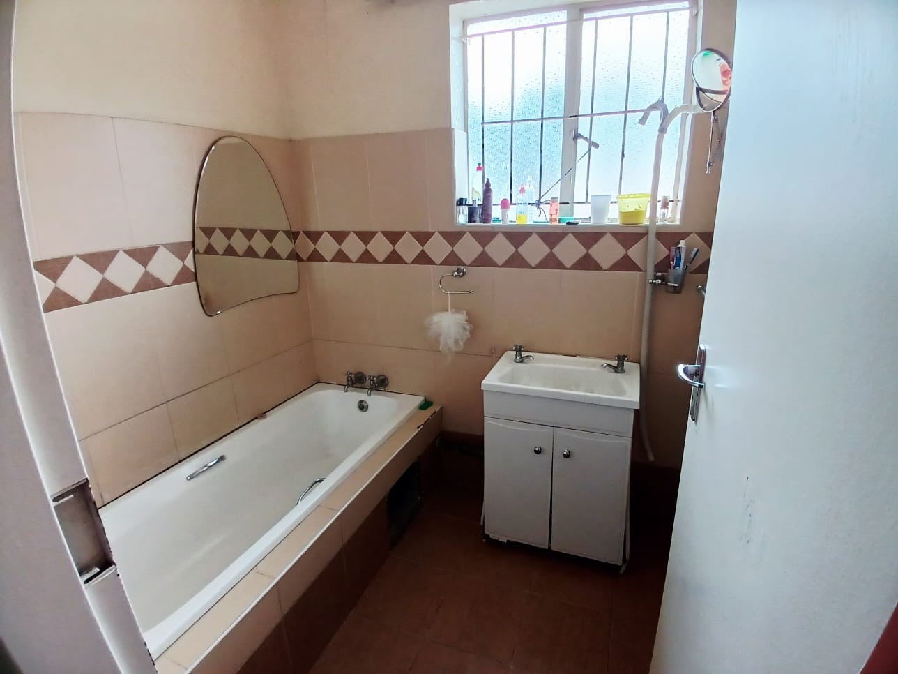 This residence boasts three well-proportioned bedrooms, each offering a private retreat. Natural light streams in through windows, and built-in wardrobes provide essential storage solutions, helping to maintain an organized living environment. The property further benefits from two bathrooms, ensuring convenience for all occupants. These functional spaces feature tiled walls and floors, with amenities including a bathtub in one and a shower enclosure in another, alongside a separate toilet room. While the aesthetic may reflect a more traditional style, the spaces are practical and well-maintained.
