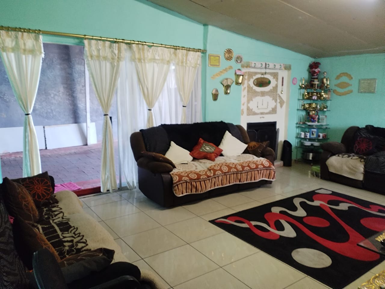 Inside, the home welcomes you with a bright, open-plan living space. The tiled floors run seamlessly throughout, giving the house a clean and uniform look that’s easy to maintain. The lounge and dining area are generous in size, creating a warm, family-friendly environment ideal for daily living or entertaining guests. A skylight above allows natural light to pour in, adding brightness and reducing the need for artificial lighting during the day.
