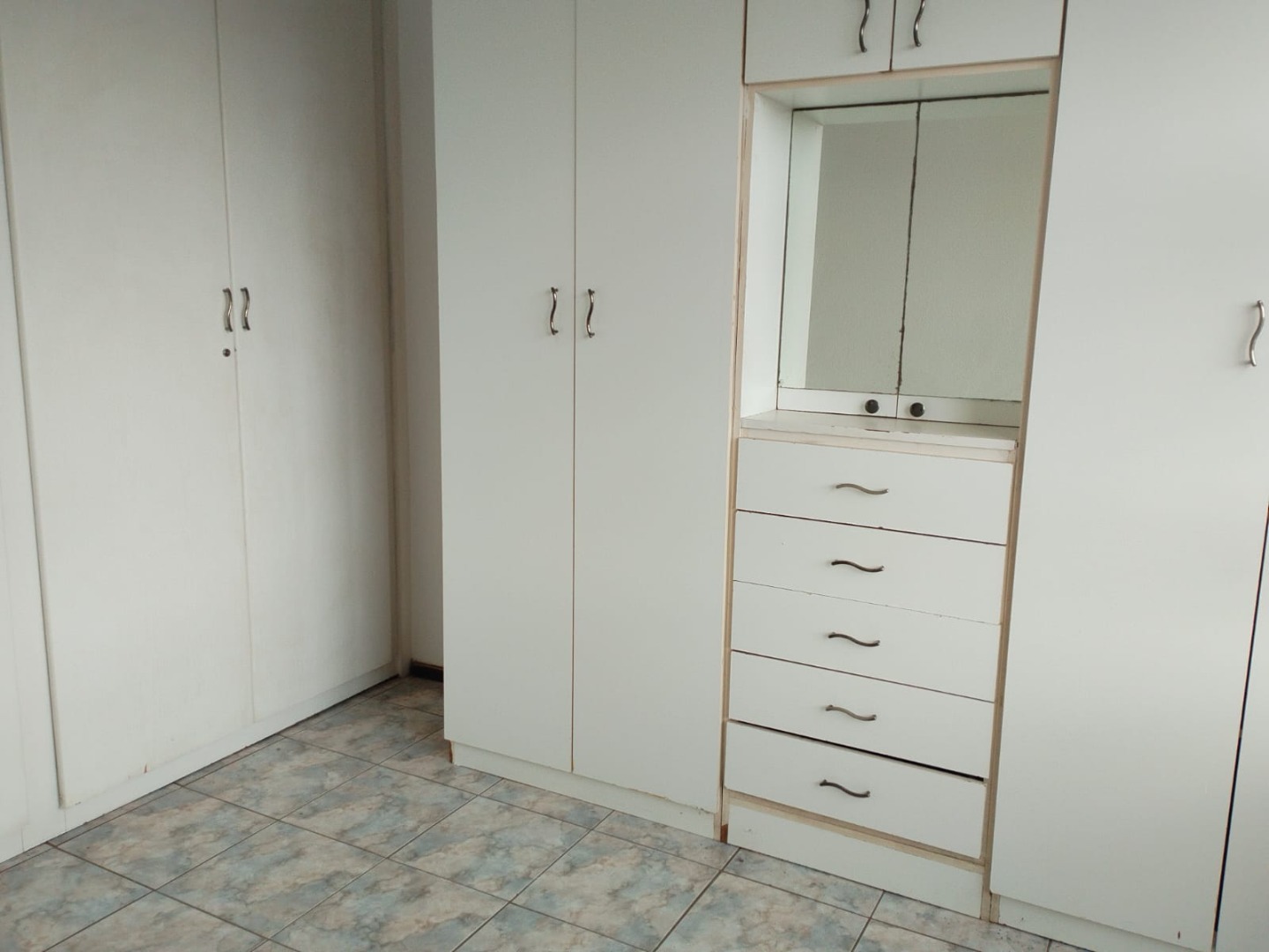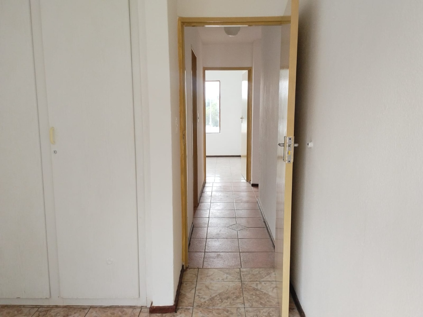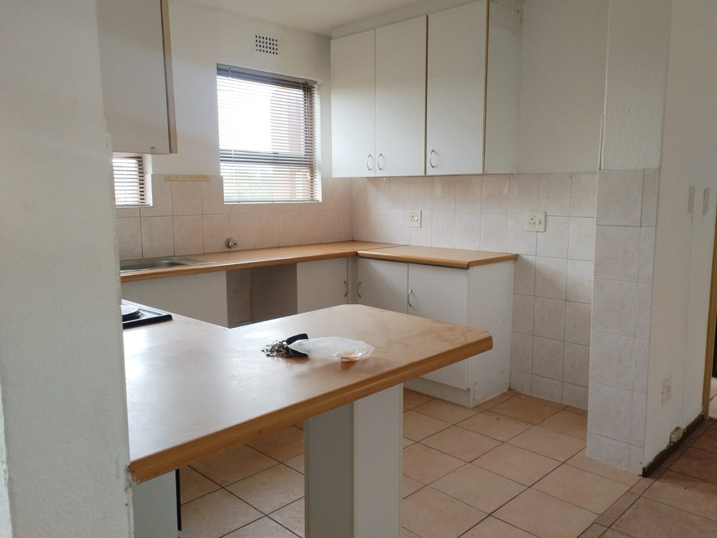 The unit features two generously sized bedrooms, both fitted with built-in cupboards that provide ample storage space while keeping the rooms neat and uncluttered. Large windows allow for good natural light, creating a warm and welcoming atmosphere throughout the home. The property is fully tiled, offering a clean, modern finish that is easy to maintain and perfect for everyday living.